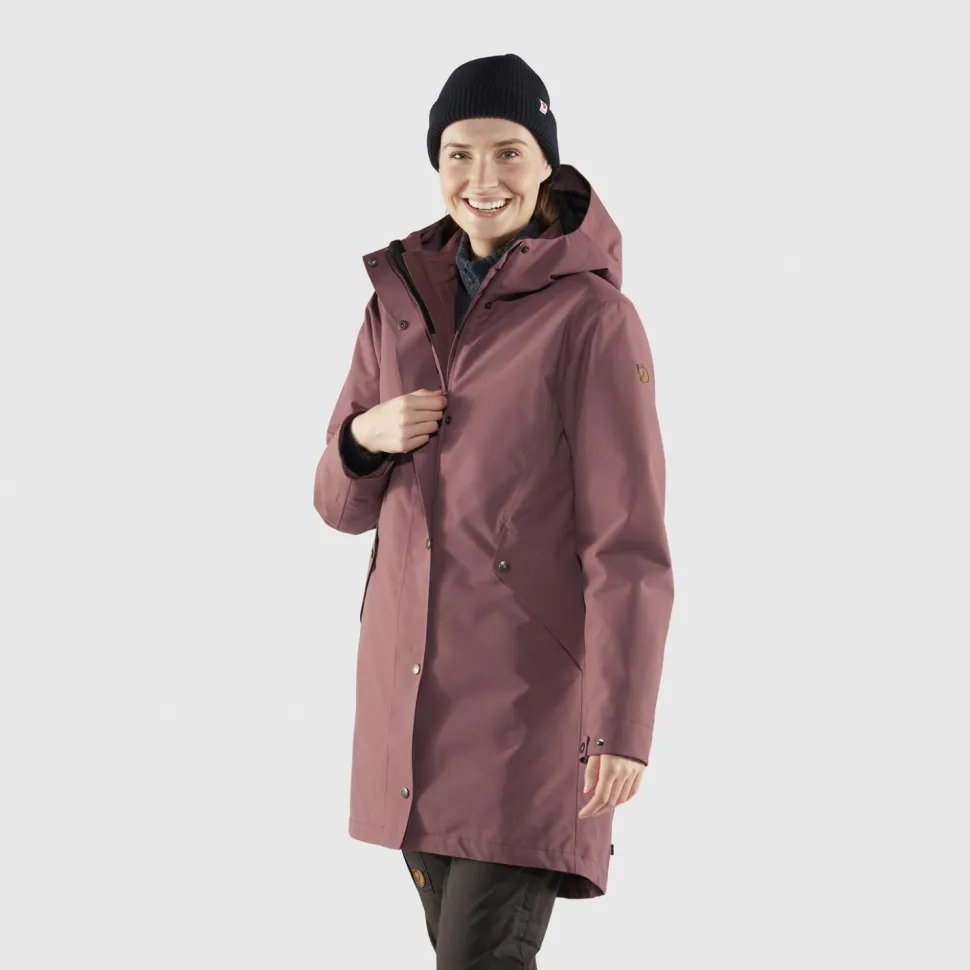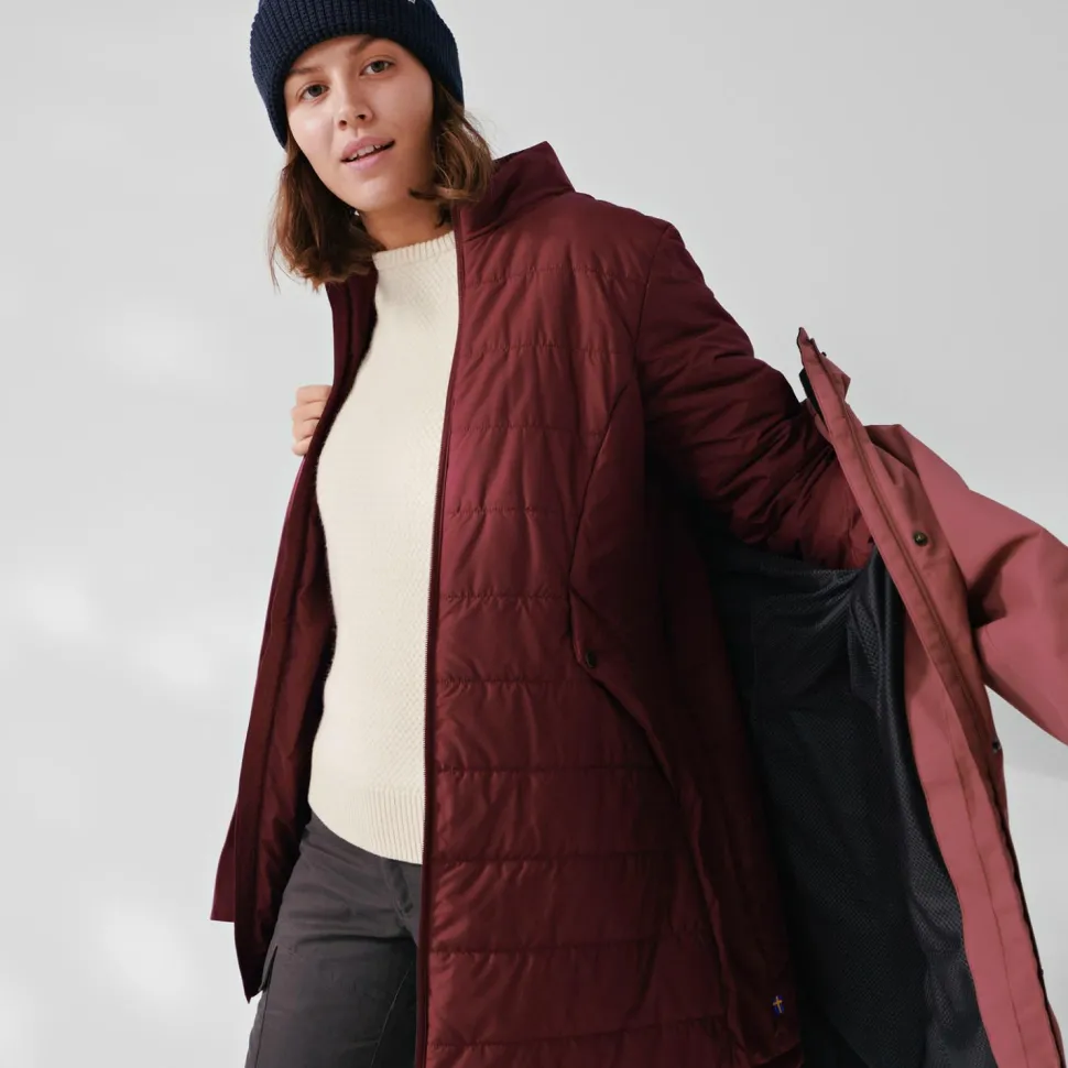 Im Women’s Visby 3 in 1 Jacket Parka kombiniert Fjällräven einen wasserdichten Parka als Außenjacke mit einer isolierenden Kunstfaserjacke als Innenjacke. Innenjacke und Außenjacke können je nach Witterung auch super einzeln getragen werden. Die funktionelle Kombination aus beiden ist im Winter und Herbst die Garantie für Wärme, Wind- und Regenschutz.