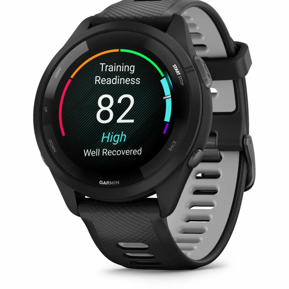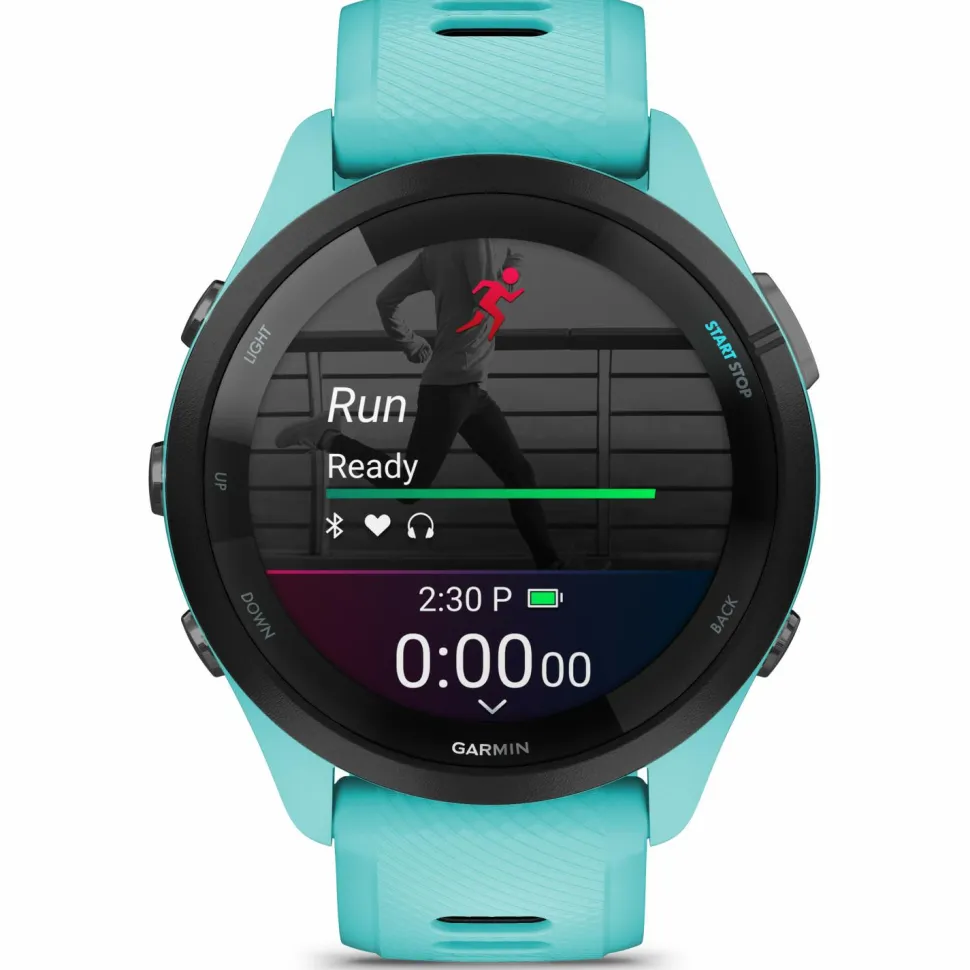 Wenn Du das Lauftraining abwechslungsreicher gestalten willst, die Trainingseffekte detailliert messen und analysieren möchtest und zudem das Traning noch gezielter sein soll, dann ist die Forerunner 265 Music von Garmin genau das Richtige für Dich! Dank der Herzfrequenzmessung und des Pulsoxiometers werden Deine Leistungsdaten genauestens erfasst. So errechnet die Uhr Deine Leistung, die benötige Erholungszeit sowie Deinen aktuellen Fitnessstand. Mit dem integrierten Garmin Coach kannst Du verschiedene Trainingspläne direkt auf die Uhr laden und Dich hiermit perfekt auf den nächsten Wettkampf vorbereiten. Verbessere Deine Pace, verfolge Deinen Leistungsfortschritt und nutze physiologische Messwerte, um Dein Lauf- oder Triathlontraining noch effizienter zu gestalten.