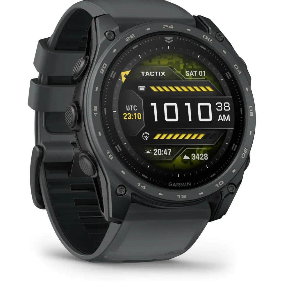 Das 51 mm Gehäuse der tactix 8 ist mit einer gehärteten Cerakote‑Keramikbeschichtung versehen, die nicht nur besonders kratz‑ und abriebfest ist, sondern der Uhr auch einen markanten, professionellen Look verleiht. Ergänzt wird die Konstruktion durch ein kratzfestes Saphirglas, eine geschützte Sensorfläche und wasserdichte, induktive Tasten.Mit einer Wasserdichtigkeit bis 10 ATM, Tauchzertifizierung bis 40 m Tiefe und einer Prüfung nach MIL‑STD‑810 ist die tactix 8 auf extreme Bedingungen ausgelegt – ob Hitze, Kälte, Nässe oder mechanische Belastung.
