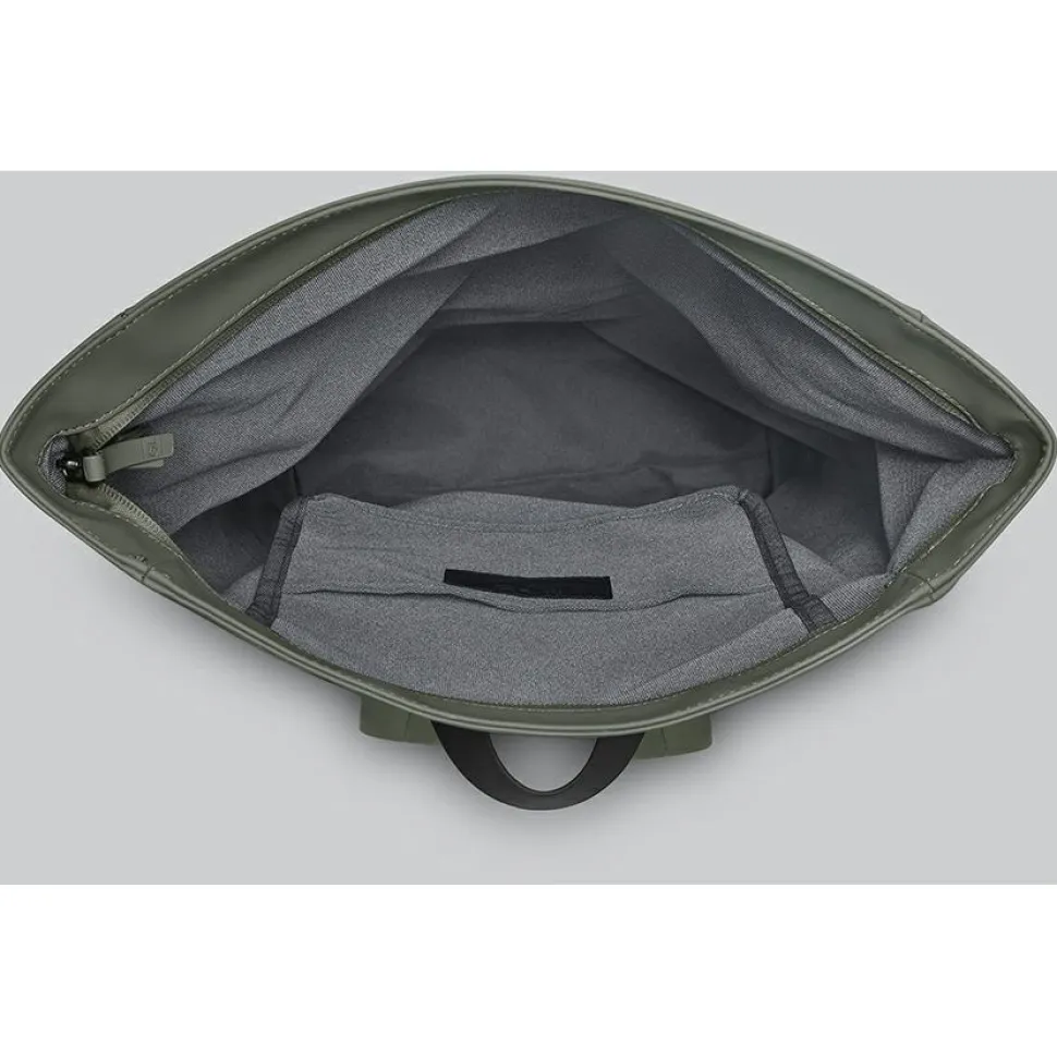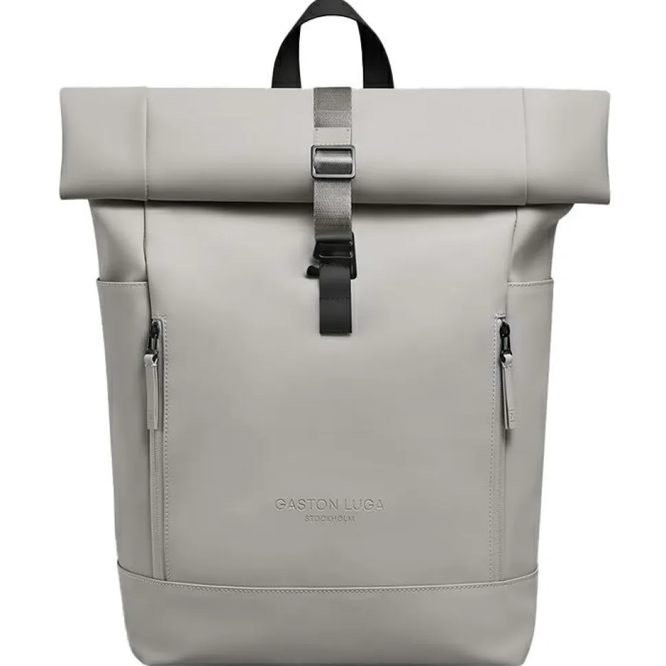 Der Rullen 20 von Gaston Luga ist ein sehr robuster und dennoch leichter Daypack für Reisen und Exkursionen aller Art. Er verbindet wasserdichtes PU und vollständig recyceltes Polyester zu einem funktionalen und komfortablen Materialmix. Der Tagesrucksack verfügt über einen charakteristischen Rollverschluss, mit dem sich Größe und Stauraum leicht und flexibel anpassen lassen. Das geräumige Hauptfach bietet Platz für alle Habseligkeiten, die über den Tag hinweg benötigt werden. Zur Ausstattung gehört auch ein gepolstertes Fach für Laptops bis zur Größe von 13 Zoll. Es wird ergänzt durch weitere Taschen, in denen all die kleineren Dinge Platz finden, die unterwegs schnell griffbereit sein sollen.