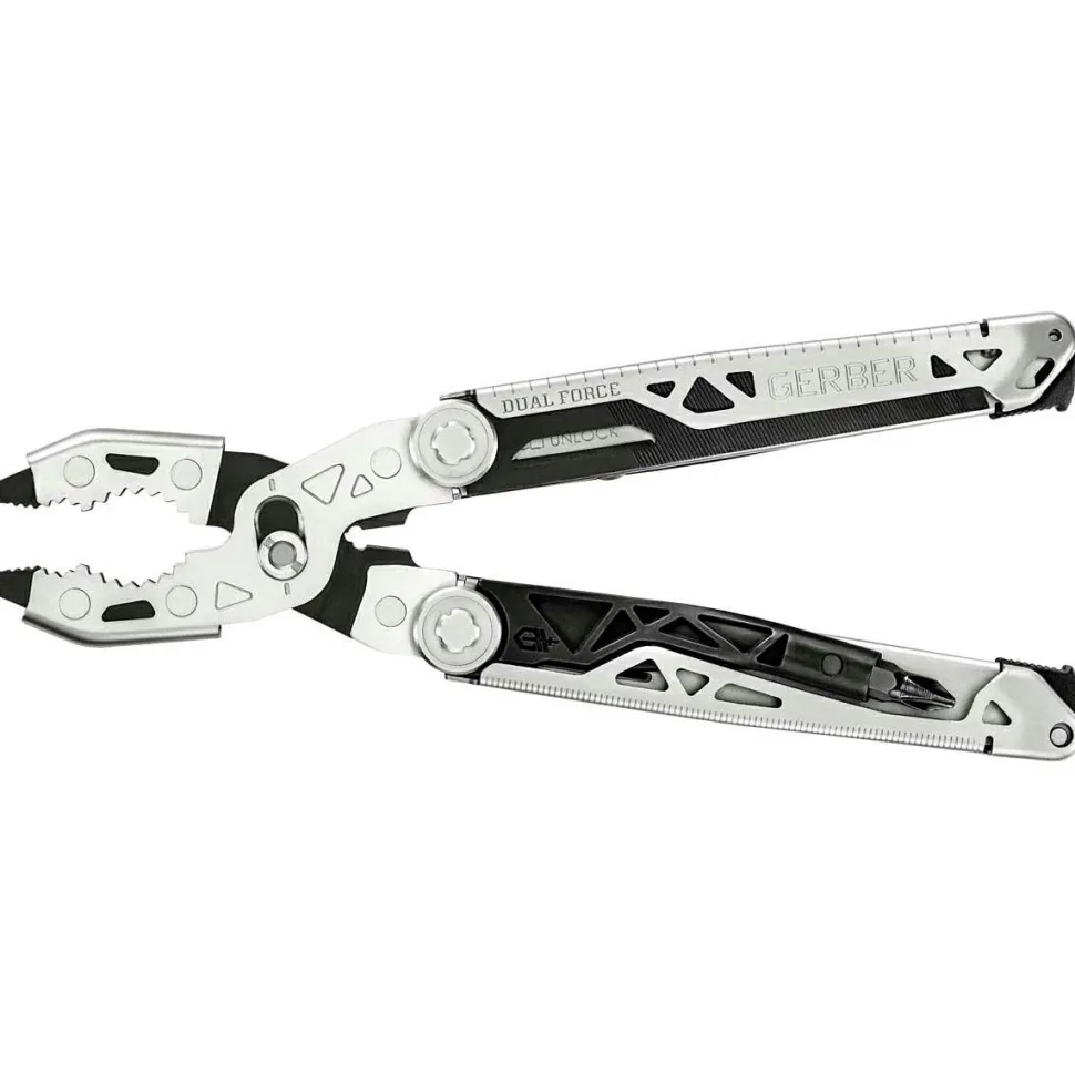 Mit dem Dual Force haben Gerber ein echtes Schmankerl im Werkzeugkoffer! Einerseits klassisches Multitool mit Anwendungen wie der obligatorischen Messerklinge; außerdem Säge, Feile, Flachschlitz- sowie Phillips #1 und #2 Schraubendreher. Andererseits lässt sich das Ganze in bester Transformers-Art um-morphen in eine echte Heavy Duty-Zange mit verstellbaren Zangenbacken! Damit bist Du zahlreichen Herausforderungen des Outdoor-Lebens, der Freizeit oder unterwegs gewachsen.