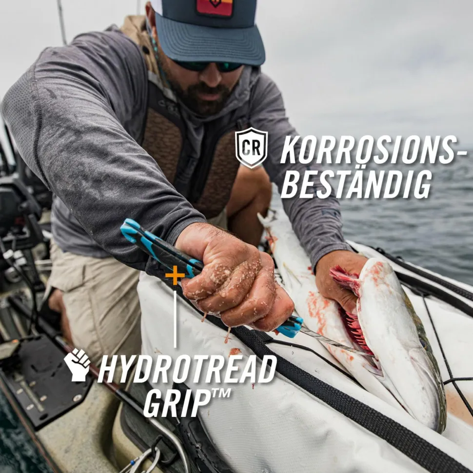 Das Messer Filetiermesser Controller 6 von Gerber ist der perfekte Begleiter für Freunde des Angelns. GuideFins nennt Gerber die leichte Erhebung im vorderen Griffbereich, die zusammen mit der auffälligen HydroTread Grip-Griffstruktur ein präzises Handling für butterweiche, scharfe Schnitte selbst bei nassfeuchter Umgebung ermöglichen. Zusammengeklappt sehr kompakt, arretiert das Messer sicher mit einem Back Lock. Eine Befestigungsöse ermöglicht die Befestigung an der Angelausrüstung.