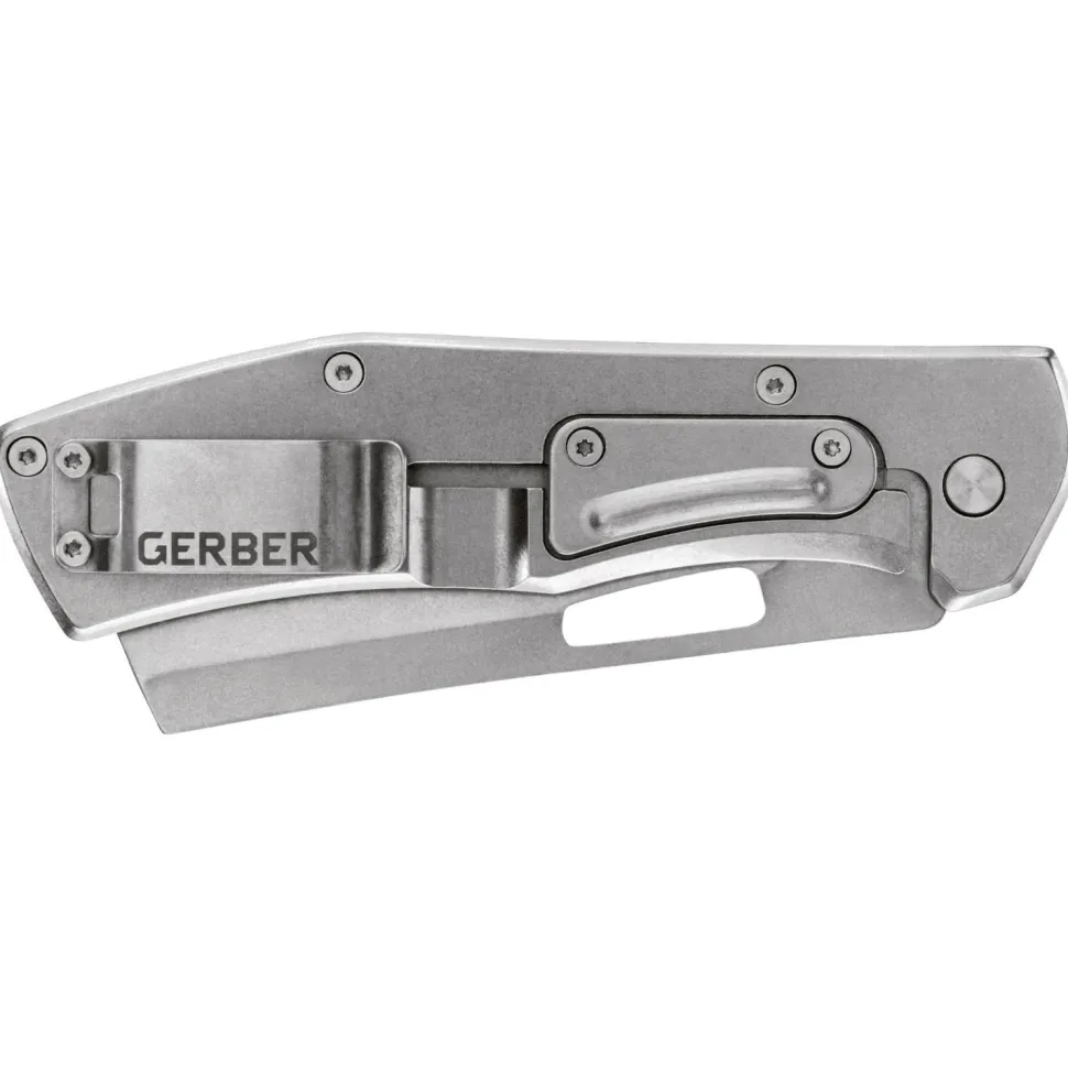 Ein auffälliges Design besitzt das Messer Faltiron G10 von Gerber. Die mit einer ungewöhnlichen sehr geraden Form ausgestattete Klinge aus rostfreiem Stahl lässt sich über den großen Klingendurchbruch mit einer Hand öffnen und arretiert per Frame Lock.