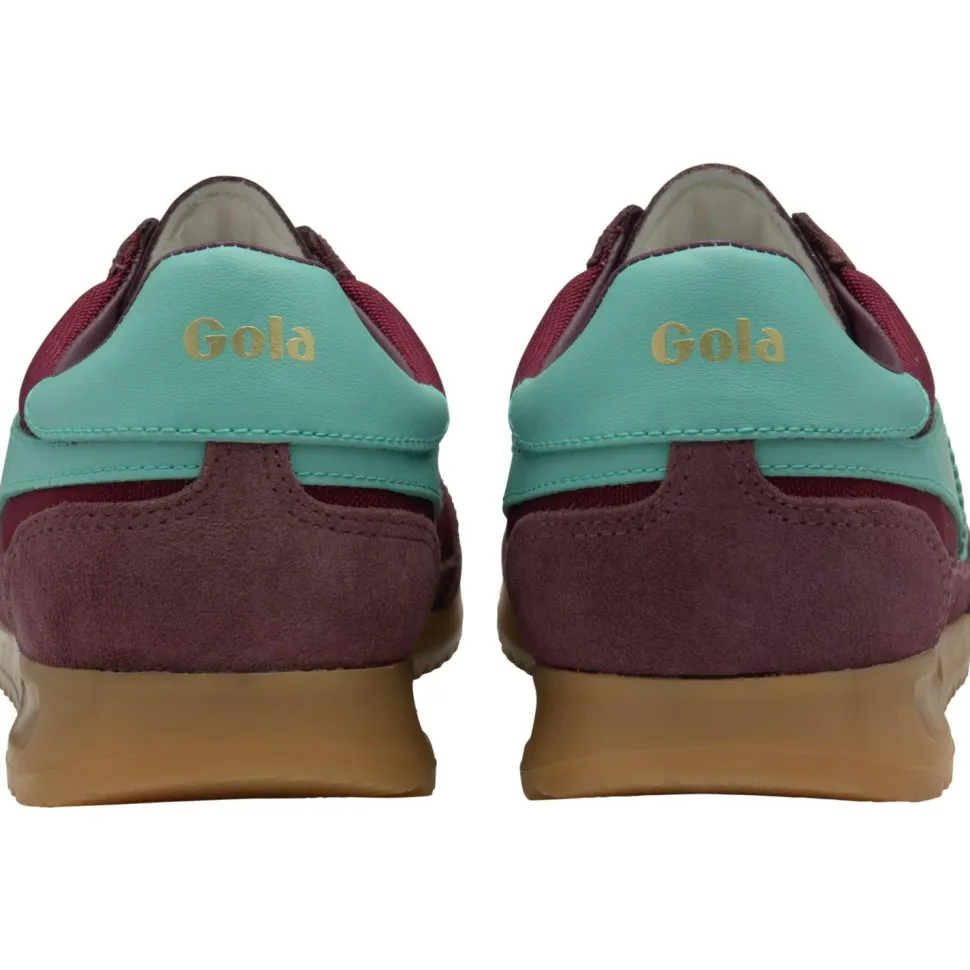 Das Wiedererkennungszeichen, die seitlichen Streifen mit Gola-Schriftzug, hebt sich farblich vom Rest des Schuhs ab und springt damit sofort ins Auge.