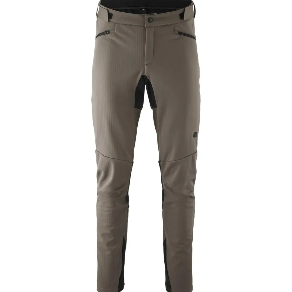 Wie gemacht für kühle Tage auf dem Mountainbike: die Trail Pants Softshell von Gonso! Die lange MTB-Radhose verwendet das strapazierfähige G-Shell Structure Softshellgewebe von Gonso, das zuverlässigen Schutz vor kaltem Wind bietet und dank PFC-freier DWR-Imprägnierung über wasserabweisende Eigenschaften verfügt. Der weitenregulierbare Bund und die vorgeformten Knie mit elastischen Einsätzen verleihen der Hose einen angenehmen Tragekomfort, während die beiden Fronttaschen mit Reißverschluss sicheren Stauraum für wichtige Kleinigkeiten bieten. Perfekt abgerundet wird die Radhose durch den zusätzlichen Abriebschutz im Gesäßbereich und die praktischen Belüftungsreißverschlüsse am Oberschenkel, die für eine optimale Ventilation sorgen.