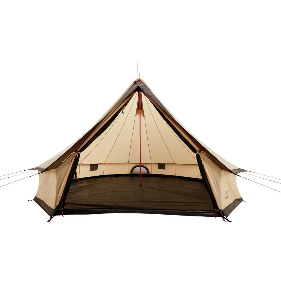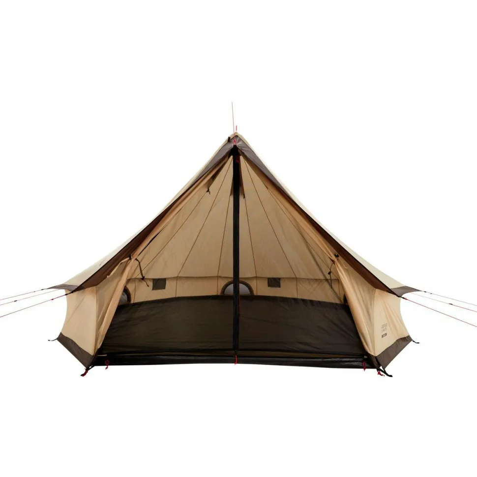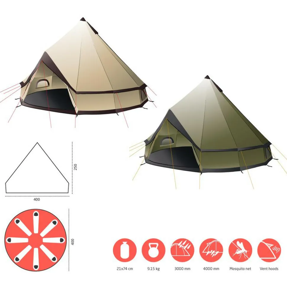 Ganze acht Personen finden im Indiana 8 Gruppenzelt von Grand Canyon bequem Platz. Dabei bietet das kreisförmige Tipi beim Schlafen und Liegen nicht nur seitlich besonders viel Platz, sondern sorgt mit 250 cm Höhe in der Mitte auch für komfortable Kopffreiheit. Ob Campingurlaub, Großfamilie oder Gruppenreise – das große Zelt überzeugt mit seinem riesigen Innenraum und flexiblen Einsatzmöglichkeiten. Dabei fertigt Grand Canyon das Tipi aus modernen Materialien, die das Zelt absolut wetterfest und strapazierfähig machen. Mit nur 9,15 kg hält der funktionelle Material-Mix zudem das Gesamtgewicht besonders niedrig und erlaubt einfachen Transport zum nächsten Zeltplatz.
