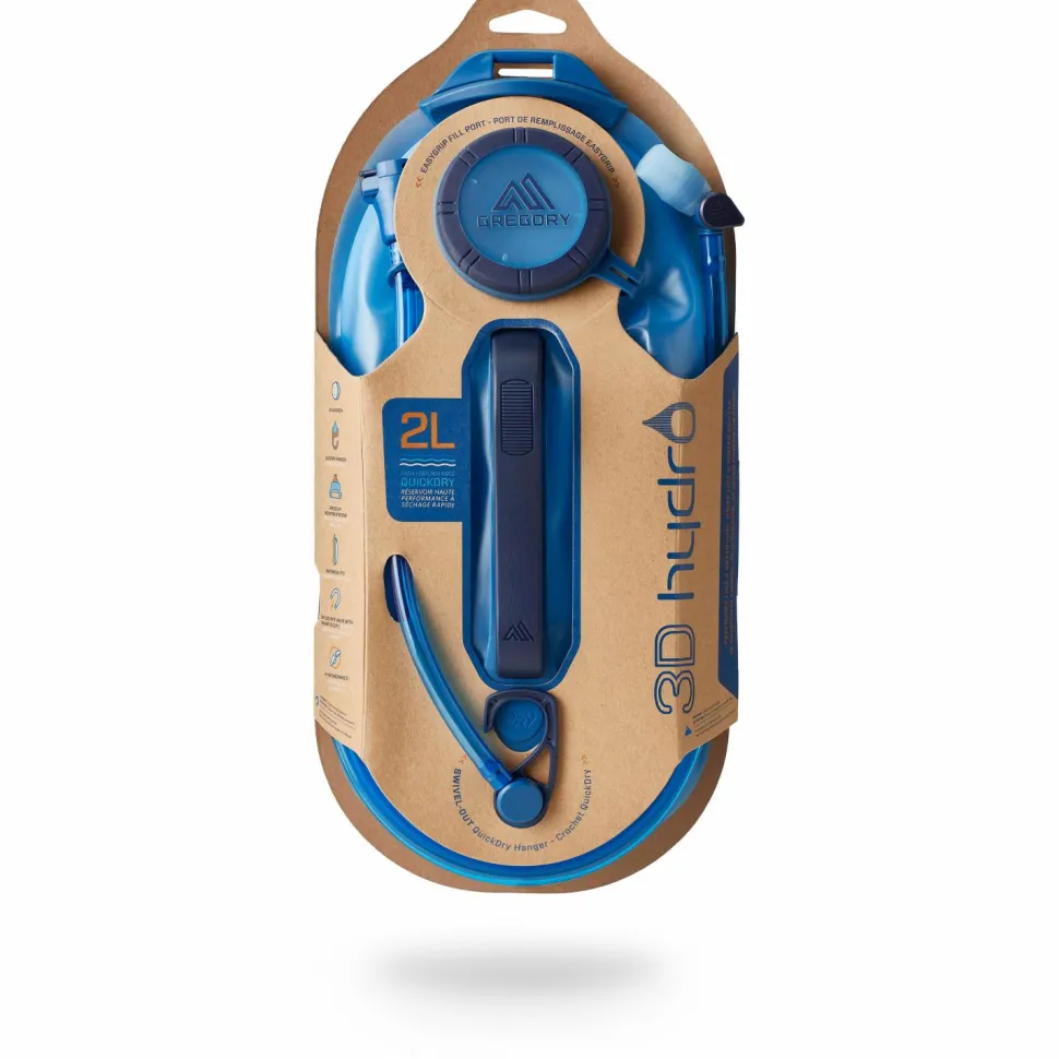Das 3D Hydro 2L– Trinksystem von Gregory passt einerseits sehr gut in viele Rucksäcke, die integrierte Aufhängung macht aber auch den Einsatz in der Basecamp-Küche zum Kinderspiel. Die zwei Liter Fassungsvermögen genügen für eine Weile des Weges, das System insgesamt ist schnelltrocknend und damit mehr als bereit für all Deine kommenden Abenteuer im Hinterland und auf begangenen wie unbegangenen Pfaden!