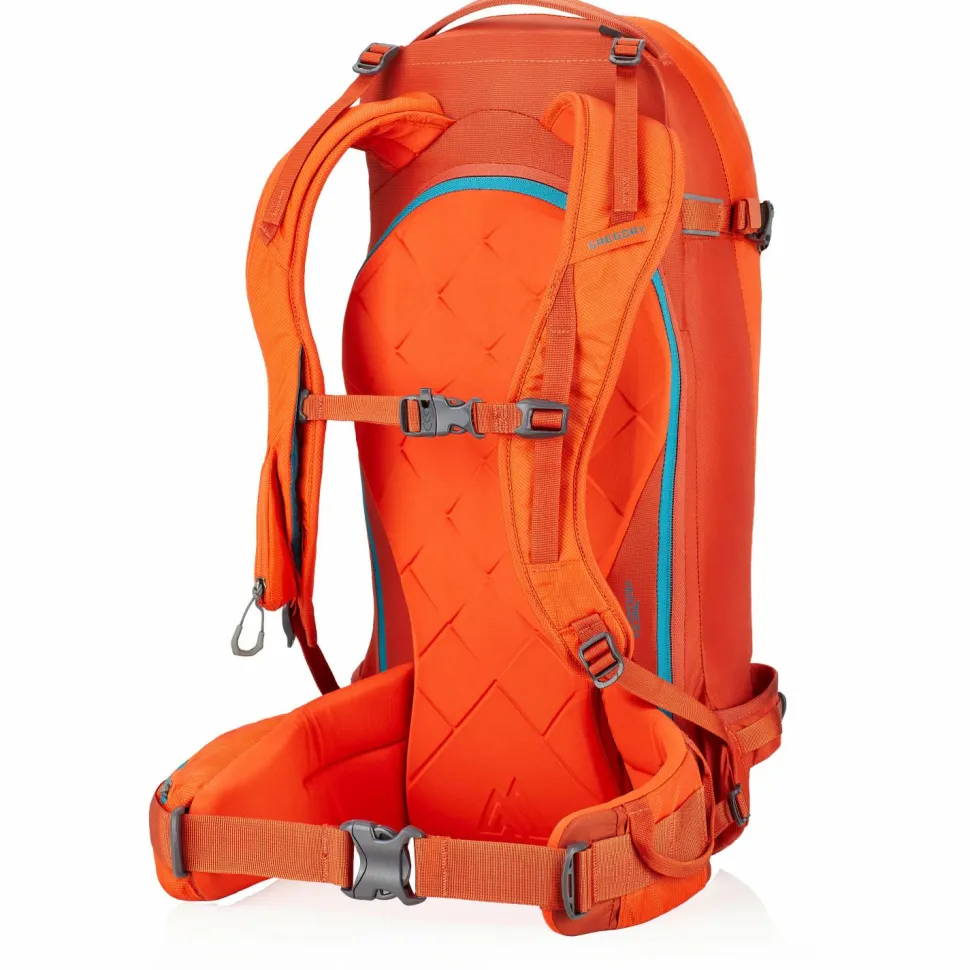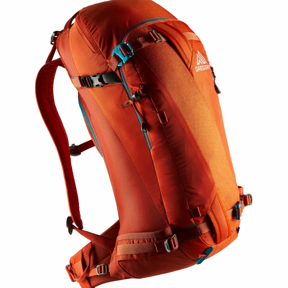Der Targhee 32 von Gregory ist der ideale Rucksack zum Skifahren oder wenn es auf Skitouren geht. Er kommt mit einem Volumen von 32 Litern und bietet dadurch viel Platz, um alles Wichtige für unterwegs mitzunehmen. Neben einem großen Hauptfach besitzt er noch ein Brillenfach sowie Halterungen für Ski/Snowboard/Schneeschuhe, Eispickel und Helm. Gerade im Bereich der Skihalterung ist das Außenmaterial schön robust, sodass die scharfen Kanten den Rucksack nicht gleich kaputt machen. Die Riemen an den Öffnungen sind handschuhfreundlich, sodass man diese nicht ausziehen muss, wenn man an den Inhalt gelangen möchte. Besonders praktisch am Targhee ist der Rückenzugriff. Wenn man oben am Gipfel angekommen ist und auf den Inhalt zugreifen möchte, gelangt man schnell auch an den unteren Inhalt, ohne alles durchwühlen zu müssen. Die Kompressionsriemen an der Seite halten den Rucksackinhalt schön kompakt. Und die Signalpfeife dient für Notfälle.