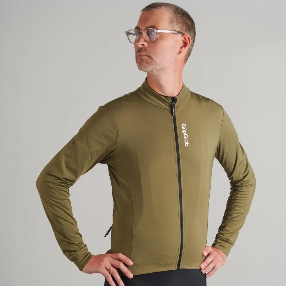 Das PACR Thermal Long Sleeve Jersey von GripGrab ist körpernah geschnitten und sorgt mit stretchy Funktionsgewebe beim Radfahren für sportlichen Tragekomfort. Es besteht aus Mikrofleece mit hohem Elasthan-Anteil, verfügt über einen kurzen Stehkragen und wird mit einem durchgehenden Frontreißverschluss verschlossen. Trikottaschen, reflektierende Details und eine verlängerte Rückenpartie ergänzen das funktionelle Radtrikot für Rennrad und Gravelbike.