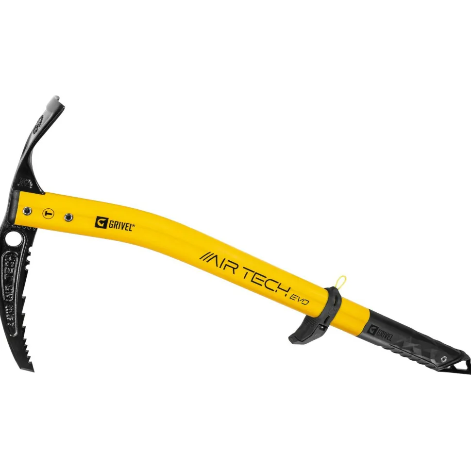 Der Air Tech Evo T ist ein klassischer Eispickel von Grivel, der Dich auf vielen Hochtouren, Skitouren oder beim Technischen Bergsteigen begleiten kann.Sein Kopf ist perfekt ausgewogen und wurde aus einem einzigen Stück warm geschmiedet. Dadurch ist er sehr robust und bleibt Dir lange erhalten.Der Schaft im G-Bone-Design ist sehr komfortabel im Handling und äußerst stabil. Mit dem G-Slider und der einstellbaren Long Leash Evo hast Du mehrere Möglichkeiten ihn an Deine Situation und an Deine Tour anzupassen.Der Griff des Air Tech Evo T ist gummiert, sodass Du einen guten Grip hast und nicht abrutschst.