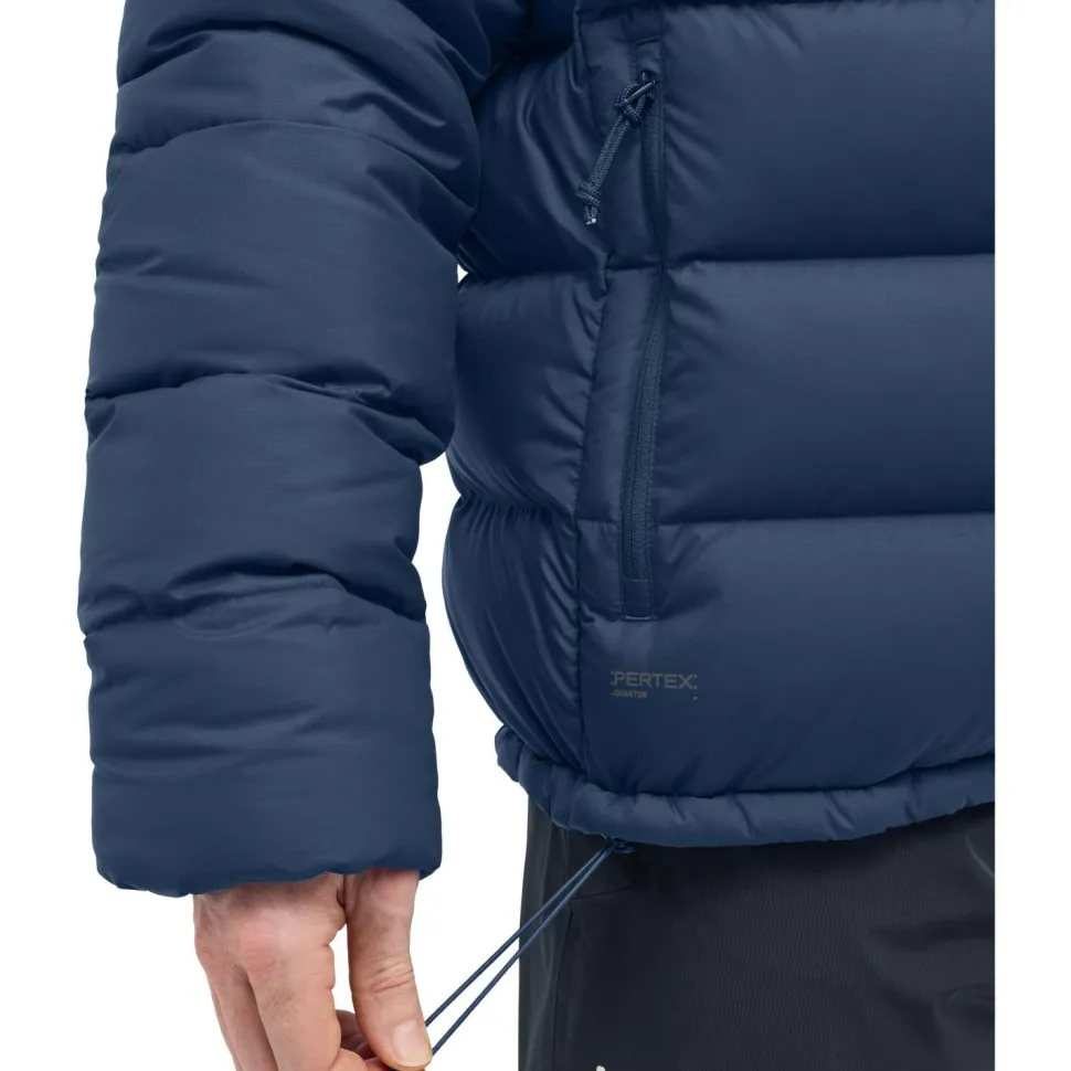 Die Rosson Down Hood von Haglöfs kommt immer dann zum Einsatz, wenns draußen ordentlich kalt ist. Kein Wunder, denn diese Daunenjacke kann vor allem eines sehr gut: Deine Wärme am Körper halten! Das Außenmaterial ist dabei leicht und widerstandsfähig zugleich und kommt auch mit leichtem Niederschlag problemlos klar. Im Inneren der Jacke sorgt die hochwertige Daunenfüllung für einen guten Wärmerückhalt und verhindert das Eindringen von kalter Luft effektiv.