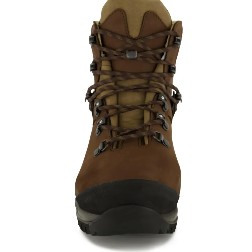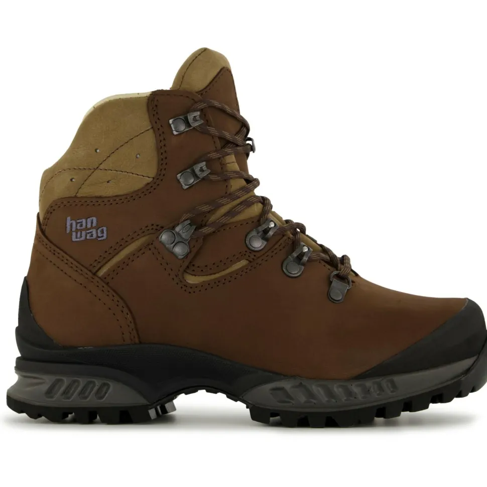 Tatra II Bunion Lady heißt das Hanwag Wanderschuhmodell für Frauen mit Hallux Valgus. Der komfortable Wanderstiefel aus hochwertigem und nachhaltig produziertem Terracare Zero Leder bietet viel Raum für das Großzehengelenk und ermöglicht so schmerzfreie Touren. Der Tatra II Bunion Lady bietet aber mehr an Komfort als das – der Trekkingschuh überzeugt durch guten Halt, dank seiner Zweizonen-Schnürung mit Click Clamps und Zungenhaken. Der frauenspezifisch hinten niedrigere Schaftabschluss besteht ebenfalls aus angenehm weichem Leder und hat Belüftungslöcher, die für ein angenehmes Klima im Schuh sorgen. Die Vibramsohle AW Integral steht mit ihrer Gummimischung und den Stollen für guten Halt auf unterschiedlichsten Böden, die Sohlendämpfung schützt vor qualmenden Socken auf längeren Asphaltstrecken.