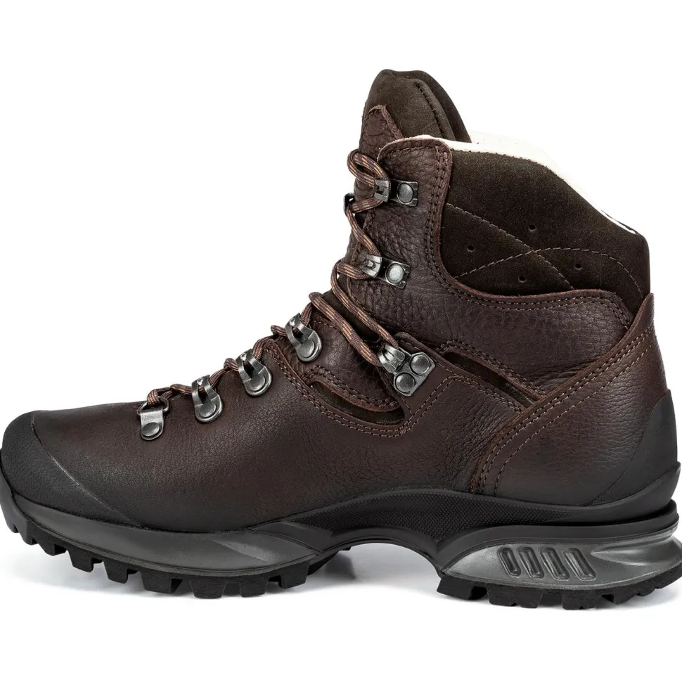 Die Hanwag Women’s Lhasa II sind mit einer grob profilierten Vibram-AW-Integral-Sohle mit speziellen Brems- und Auftrittsstollen ausgestattet. Diese bieten auch in steilem Gelände hervorragenden Halt. Gummiprotektoren an Spitze und Ferse schützen zudem vor scharfkantigen Steinen. Kurzum: Wer stabile, aber dennoch sehr komfortable Trekkingstiefel sucht, ist mit den Hanwag Women’s Lhasa II bestens beraten.
