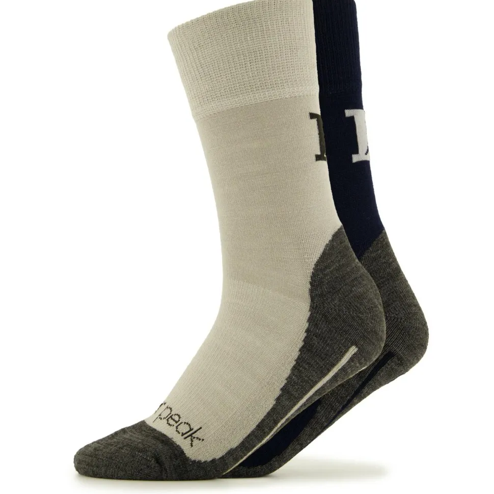 Die EvergreenHe. Hiking Crew Socks 2-Pack von Heber Peak kommen direkt im Doppelpack und sind perfekt für das Wandern und Mehrtagestouren geeignet. Das etwas dickere Gewebe ist an den Zehen und den Fersen zusätzlich gepolstert und sorgt hierdurch für eine angenehme Dämpfung beim Gehen. Mit dem Materialmix aus Kunstfasern und Merinowolle ist zudem für eine hohe Atmungsaktivität, eine aktive Geruchshemmung und ein kratzfreies Gefühl auf der Haut gesorgt.