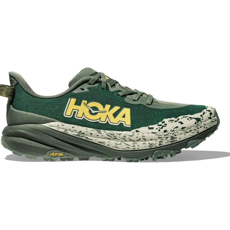 Mit den Speedgoat 6 von HOKA bist Du für anspruchsvolle Trails bestens ausgerüstet! Die superleichten Trailrunningschuhe mit extrem griffiger Vibram-Megagrip-Sohle und 5 mm tiefen Stollen bieten Dir hervorragenden Halt und Schutz auf steinigen, alpinen Trails. Aber auch auf aufgeweichten Waldwegen oder trockenen Schotterpisten bist Du mit diesen Schuhen schnell und sicher unterwegs.