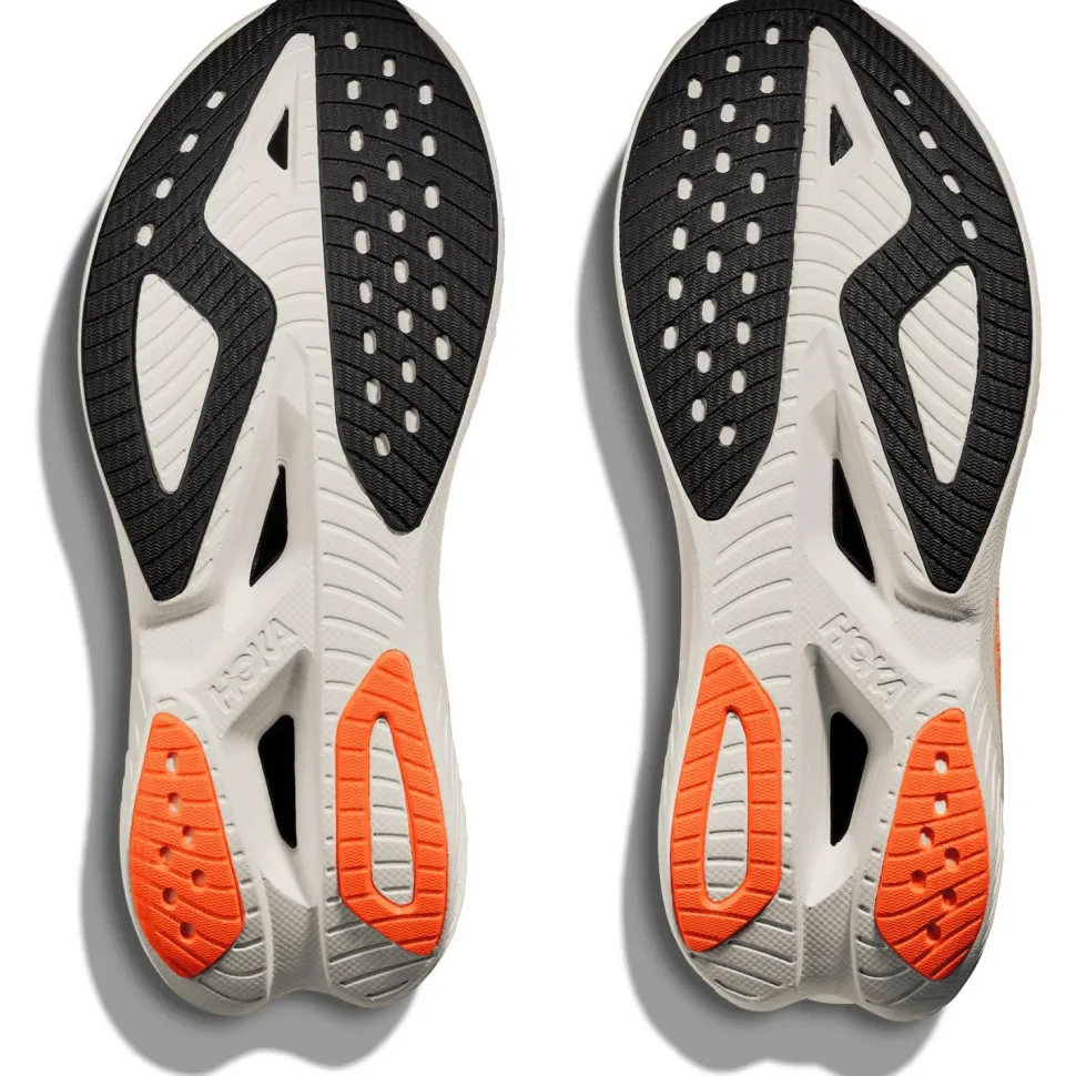 Sein zweischichtiger Aufbau mit reaktionsfreudigem PEBA-Top-Layer liefert kraftvolle Dämpfung ohne Energieverlust. Unterstützt von der Pebax-Platte katapultiert Dich der Schuh förmlich nach vorn. Die MetaRocker-Geometrie sorgt für ein flüssiges, schnelles Abrollen – egal, wie fordernd das Training wird oder wie lang die Strecke ist.