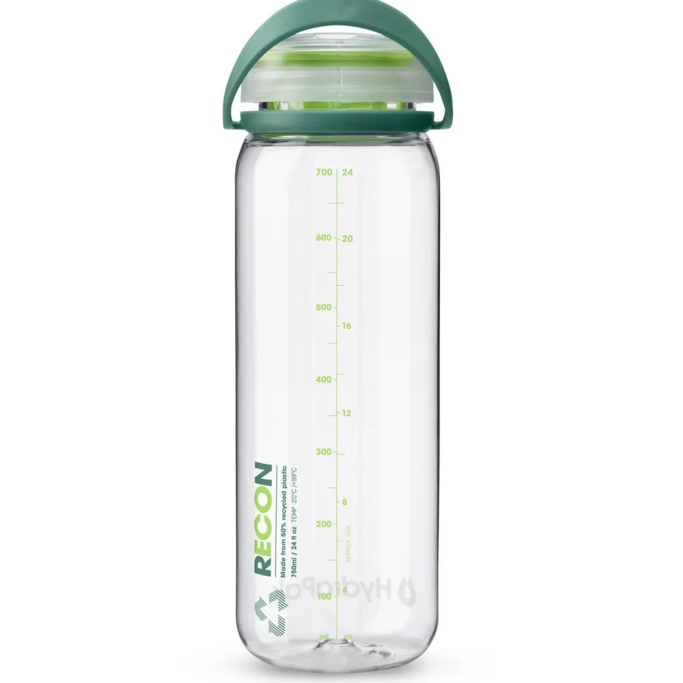 Die Recon Bottle II von HydraPak ermöglicht mit dem durchdachten und einfach zu reinigenden Drehverschluss ein bequemes, glasähnliches Trinken. Die Flasche besteht zu einem großen Teil aus recyceltem Material und ist frei von BPA, BPS und BPF. Du kannst sie problemlos in der Spülmaschine reinigen. Für den leichteren Transport ist sie mit einem flexiblen Tragegriff ausgestattet.
