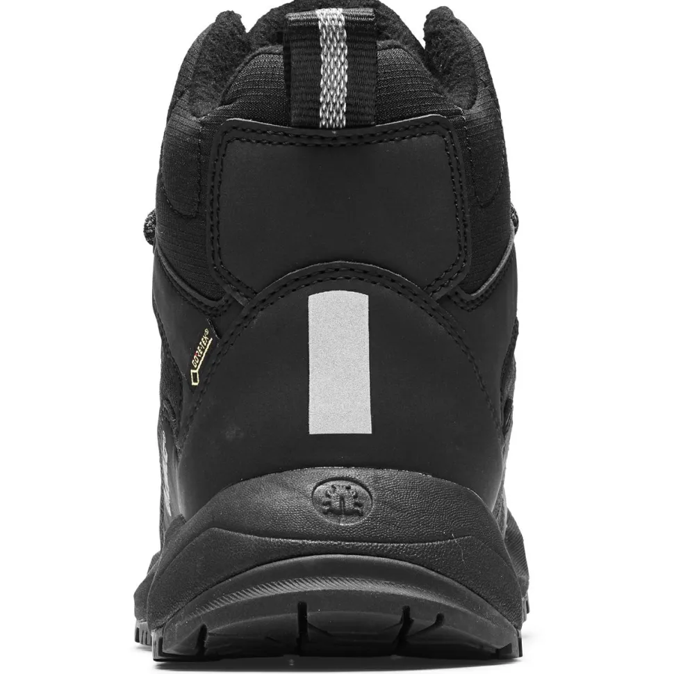 Verstärkungen an Zehen und Fersen liefern einen soliden Schutz im Gelände. Der Spritzschutz ist praktisch im Matsch und Schnee. Mit der unterstützenden Ortholite-Einlegesohle und der dämpfenden Zwischensohle wird ein natürliches Gehverhalten gefördert. Der höhere Schaft liefert eine sichere Stabilität. Mit der flexiblen Schnürung kannst Du die Passform stets variieren. Der Stiefel ist mit einer Gummi-Laufsohle mit Spikes aus Hartmetall ausgestattet. Damit hast Du selbst bei eisigen Verhältnissen einen exzellenten Grip und die optimale Sicherheit beim Wandern. Da der Schuh hauptsächlich aus recycelten Materialien besteht, ist er auch in Sachen Umweltschutz vorne mit dabei. Klassisches Design mit praktischen Features findest Du im Pace3 BUGrip GTX!
