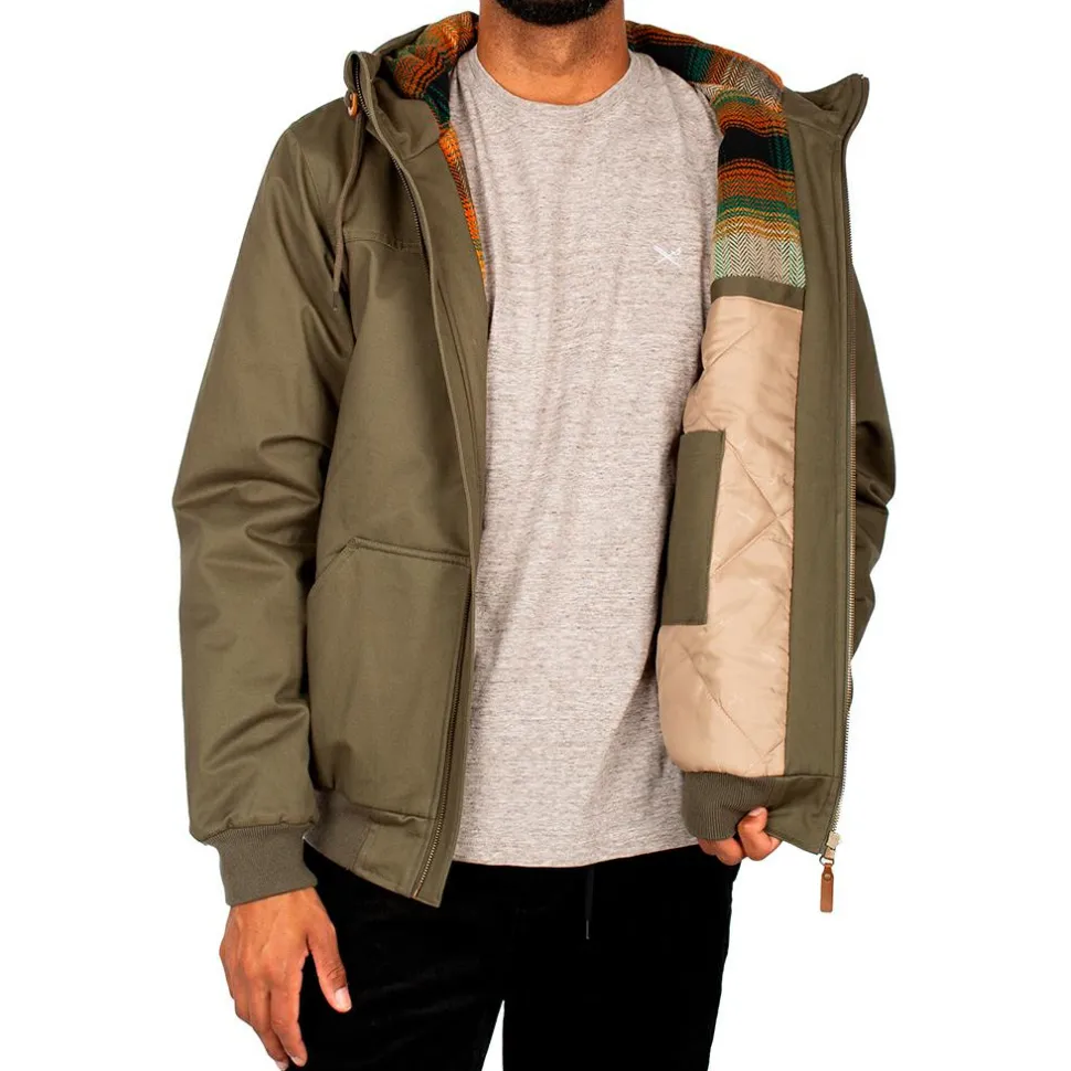 Das Wonderer Jacket von Iriedaily kann in der Freizeit vielseitig kombiniert werden. Mit dem lässigen, aber dennoch modernen Look ergänzt es jedes Outfit. Dank der wasserabweisenden Eigenschaften eignet es sich für verregnete Tage. Die verstellbare Kapuze bietet Flexibilität in der Tragweise. Sie kann an die individuellen Wünsche angepasst werden. Dank der Rippbündchen an Ärmeln und am Saum schmiegt sich die Jacke angenehm an die Haut an. Dank der Verarbeitung von Bio-Baumwolle ist sie atmungsaktiv. Sie schmiegt sich weich an den Körper an und punktet mit hohem Tragekomfort.