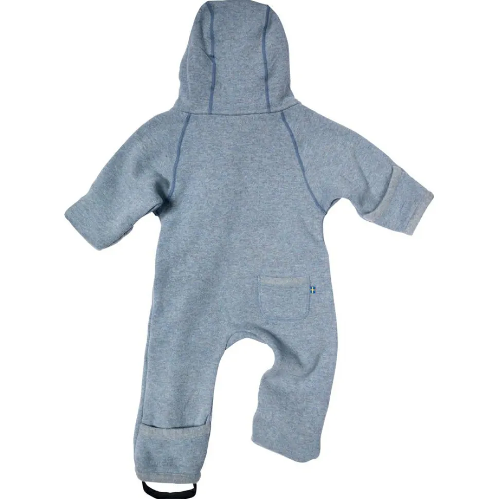 Der Baby’s Shaun Jumpsuit von Isbjörn ist ein superschöner Overall aus einem recycelten Woll-Synthetik-Gemisch mit einer angenehmen Wärmeisolierung, zudem ist das Material atmungsaktiv und geruchshemmend. Die Gewebeoberfläche hat eine Strickstruktur mit einem Melange-Effekt und eine weiche, angeraute Fleece-Innenseite, diese bietet einen tollen Tragekomfort auf der Haut.