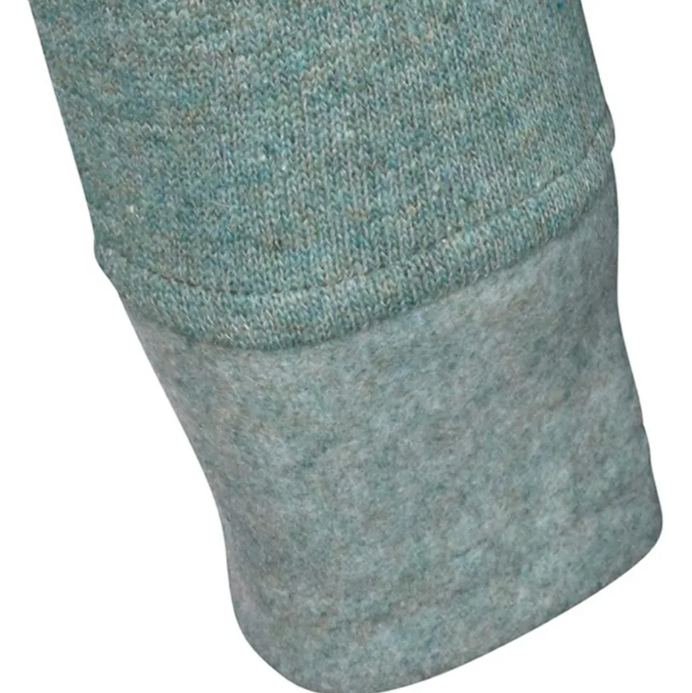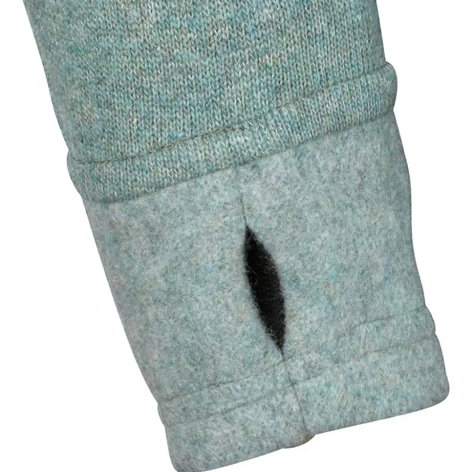Sie besteht aus einer recycelten, Mulesing-freien Woll-Synthetik-Mischung, die eine angenehme Wärmeisolierung bietet und zudem atmungsaktiv und geruchshemmend ist. Die Oberfläche hat eine Strickstruktur mit Melange-Effekt und die weiche, angeraute Innenseite aus Fleece bietet einen hohen Hautkomfort. Die Kapuze schützt Kopf, Ohren und Nacken vor kaltem Wind und kann bei nicht Gebrauch einfach abgeknöpft werden. Verlängerte Ärmel mit einem ebenso weichen Fleece verfügen über praktische Daumenschlaufen. Ob zum Sporteln oder für die Freizeit ist der Shaun Hoodie bestens geeignet.