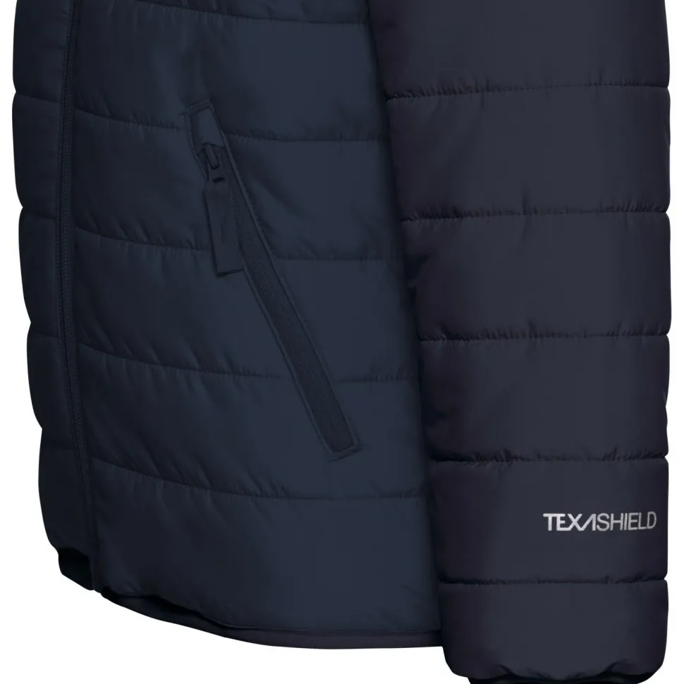 Die beiden Seitentaschen mit Reißverschluss sind groß genug, dass Kinder ihre kleinen Schätze dort verstauen können. Elastische Ärmelbündchen schmiegen sich angenehm an die Handgelenke an und sorgen dafür, dass unangenehme Kälte außerhalb der Jacke bleibt. Der Logoprint auf der Brust zieht alle Blicke auf sich. Mit dem modernen und dennoch sportlichen Look kann die Winterjacke zu jedem Outfit kombiniert werden. Sie macht sowohl Kinder als auch ihre Eltern glücklich.