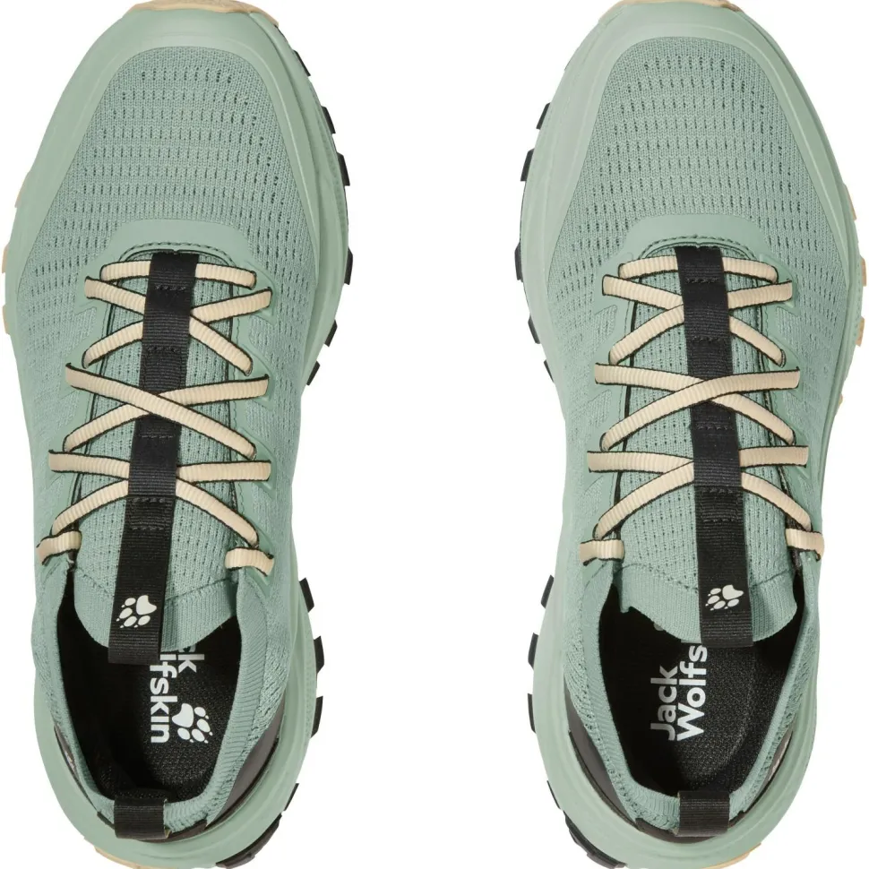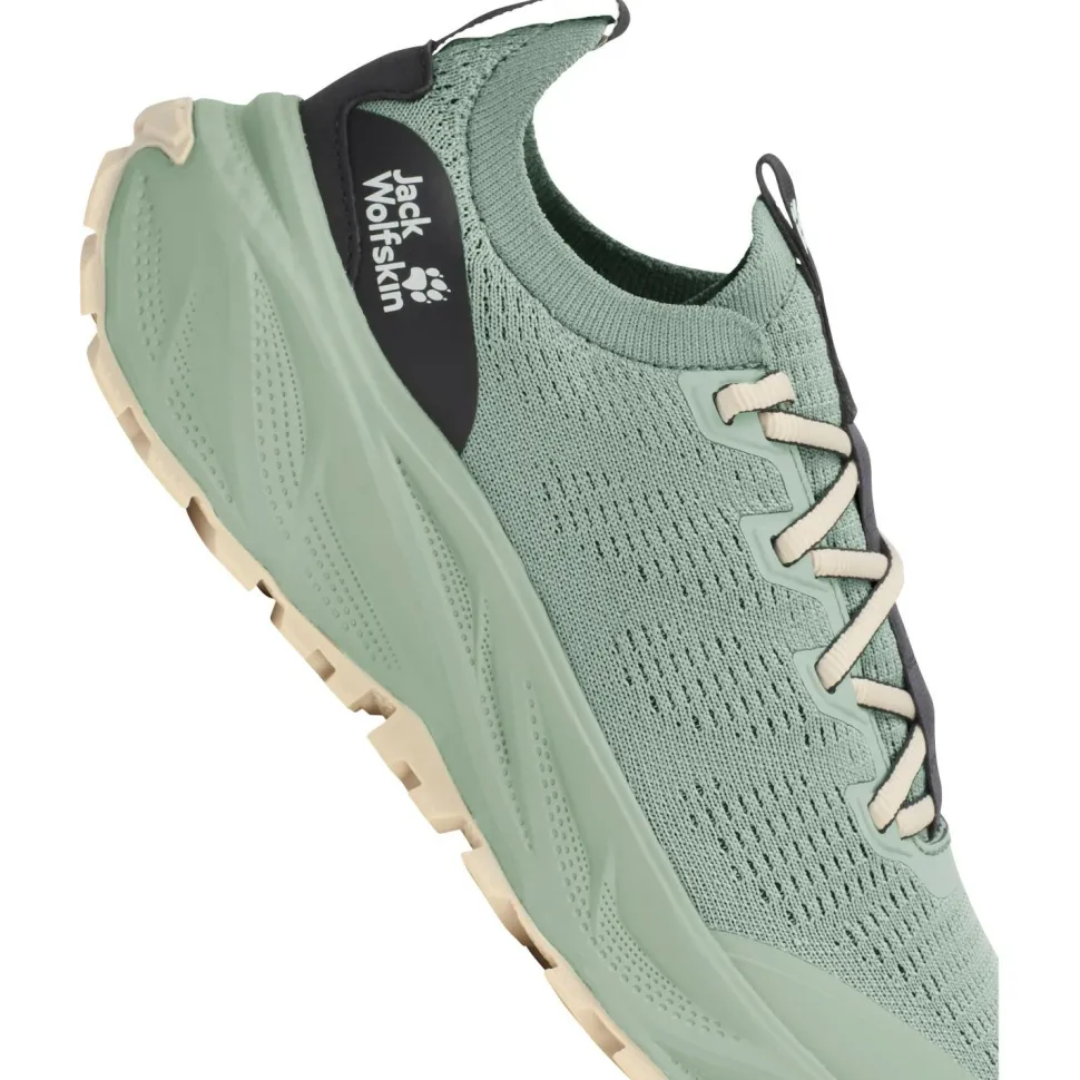 Die innovative Kombination aus EVA-Zwischensohle, Gummi-Laufsohle und widerstandsfähigem Synthetik-Obermaterial sorgt für optimale Performance auf alpinen Trails. Die EVA-Zwischensohle dämpft jeden Schritt spürbar ab und unterstützt einen neutralen Laufstil, was Deine Gelenke schont und Ermüdung vorbeugt. Mit der griffigen Gummi-Laufsohle hast Du auch auf rutschigem Untergrund sicheren Halt. Das Synthetikmaterial schützt zuverlässig vor äußeren Einflüssen und ist leicht zu reinigen – typisch Jack Wolfskin: entwickelt in Deutschland, bewährt im Gelände.