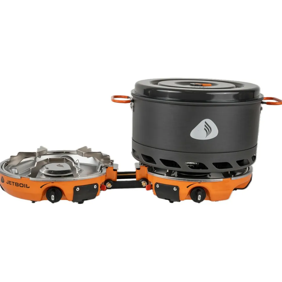 Mit dem Genesis Basecamp System musst Du Dich nicht mehr mit Dosenravioli zufriedengeben. Die präzise Flammenkontrolle erlaubt Dir echtes Kochen – ob Du nun Pancakes brätst, Pasta kochst oder Gemüse anbrätst. Und wenn Du noch mehr willst: Das System ist kompatibel mit anderen Jetboil-Modulen.