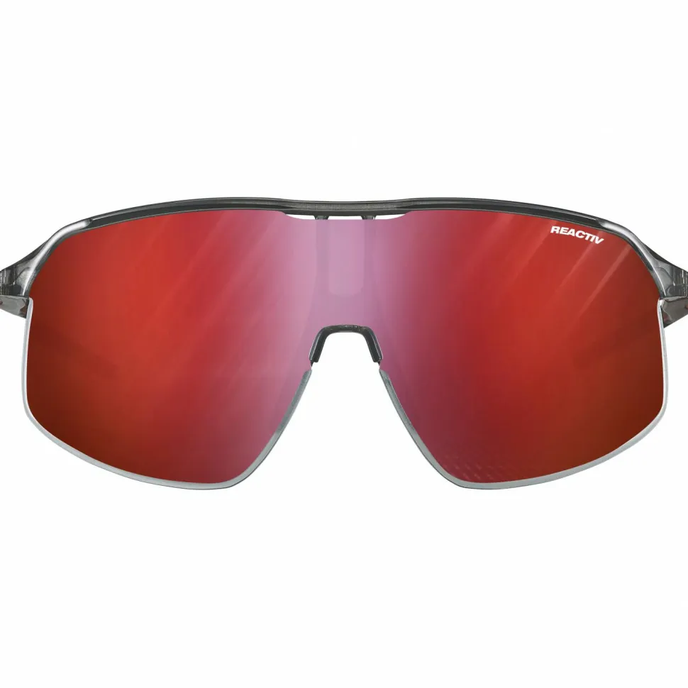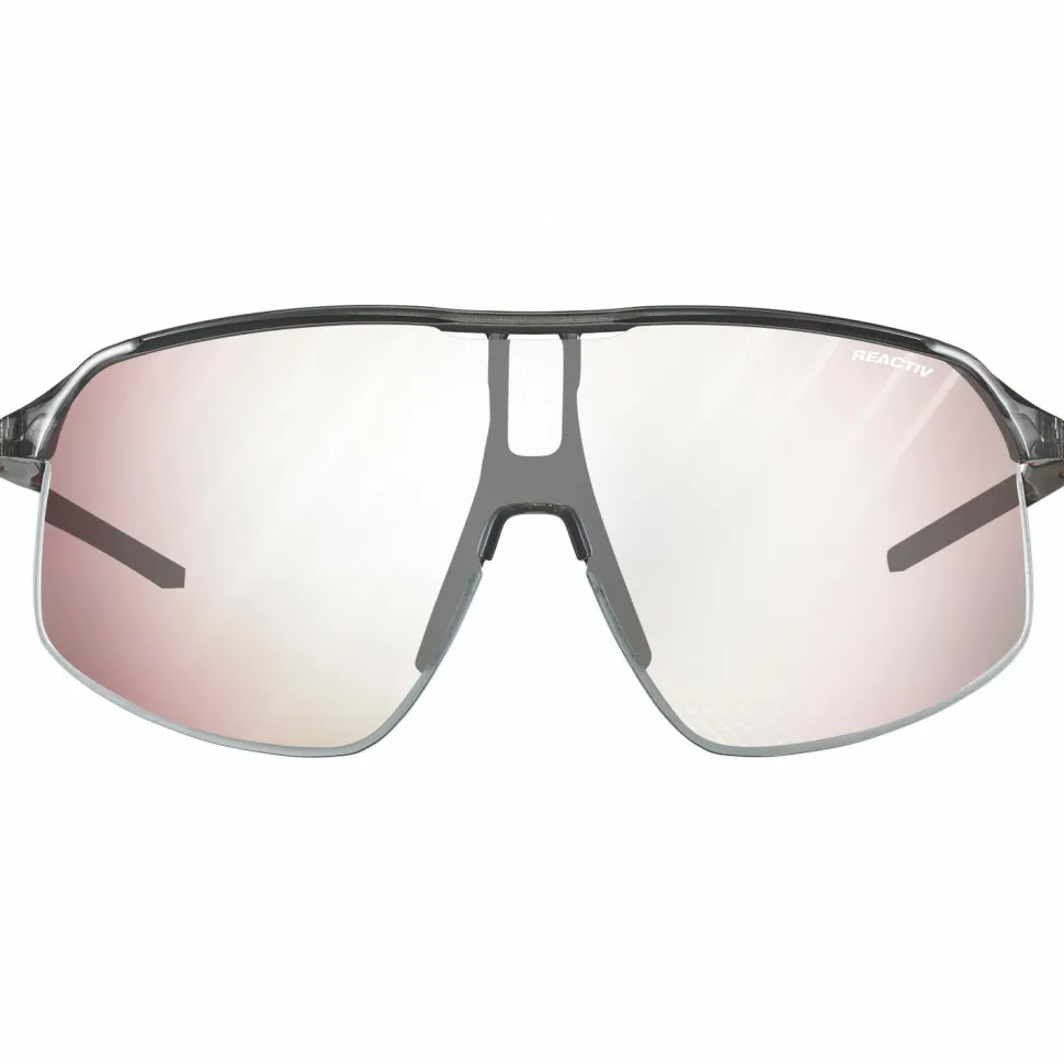 „Ab aufs Rad!“, lautet die Parole mit der Density Reactiv S0-3 von Julbo. Diese Fahrradbrille ist fürs Rennradfahren und Mountainbiken gleichermaßen gut geeignet. Durch die schmalen Bügel und den griffigen Steg sitzt die Brille auch bei höheren Geschwindigkeiten gut. Die große Scheibe schützt dabei deine Augen zuverlässig vor Fahrtwind. Zusätzlich ist die Scheibe selbsttönend und passt sich so von sonnig bis bedeckt an die vorherrschenden Lichtverhältnisse an.
