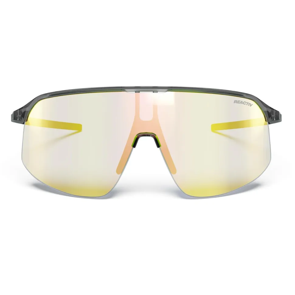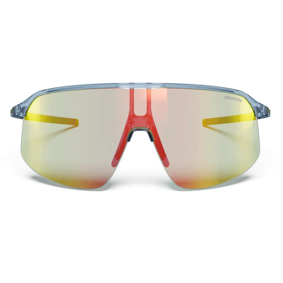 Die Density Reactiv S1-3 von Julbo wurde für den Einsatz auf dem Rad entworfen. Kein Wunder, denn diese große Fahrradbrille mit zylindrischer Scheibe schützt Deine Augen zuverlässig vor grellem Licht und Fahrtwind. Der Rahmen ist dabei flexibel und sitzt dank der griffigen Beschichtung immer sicher. Außerdem ist er so geformt, dass Du die Brille problemlos auch in Verbindung mit einem Radhelm tragen kannst.