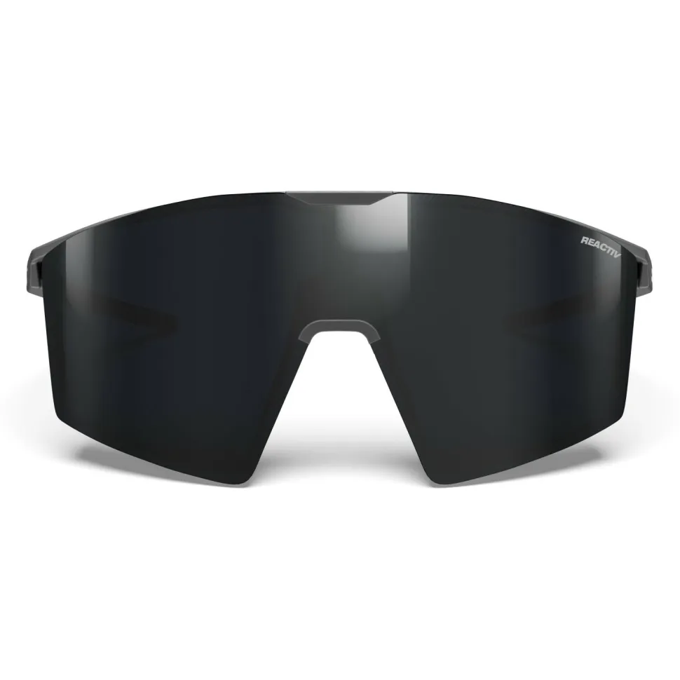 Die Edge Reactiv S0–3 von Julbo ist eine Fahrradbrille für sportliche Einsätze, bei denen Du auf freie Sicht, geringes Gewicht und einen stabilen Sitz setzt. Der minimalistische Rahmen bietet ein besonders weites Sichtfeld mit Panoramasicht, während Full Venting und Antibeschlag-Beschichtung die Sicht auch bei hoher Intensität klar halten.