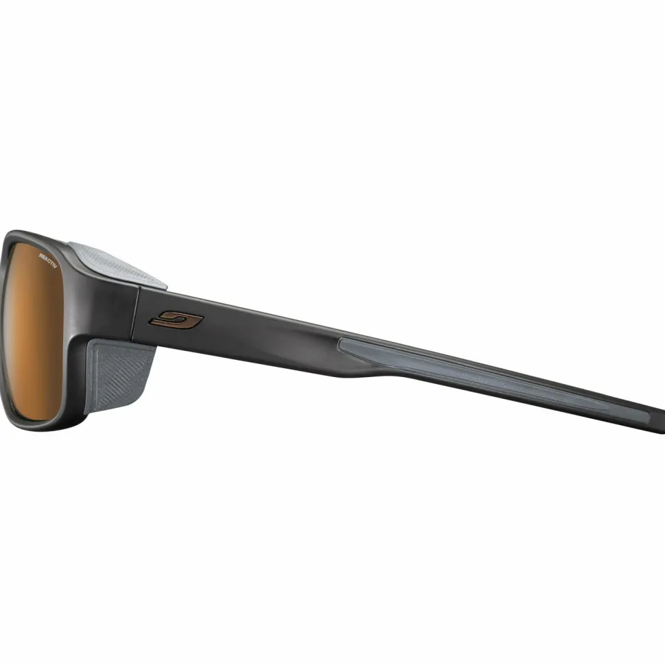 Die Montebianco 2 Polarizing S2-4 (VLT 20-5%) von Julbo ist der ideale Begleiter zum Genießen grandioser Berglandschaften. Sie eignet sich perfekt zum Wandern, auf Hochtouren und für Expeditionen. Die Linienführung dieses beliebten Modells wurde komplett überarbeitet und modernisiert, um dessen sportliche, dynamische Wirkung zu unterstreichen. Damit der Tragekomfort nochmal erhöht wird, ist die Brille zudem mit Grip-Tech Bügeln und einem rutschfesten Nasensteg ausgestattet. Zudem kommt sie mit selbsttönenden Scheiben, die der Schutzklasse 2-4 einzuordnen sind. So ist sie ein absolutes Must-have im Gebirge. Ihr umschließendes Design mit abnehmbaren Seitenteilen bietet in Höhenlagen zuverlässigen Schutz beim weiten Blick zum Horizont.