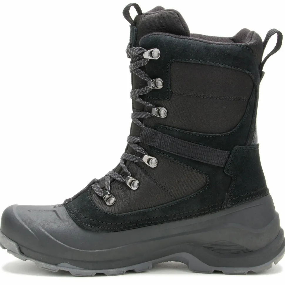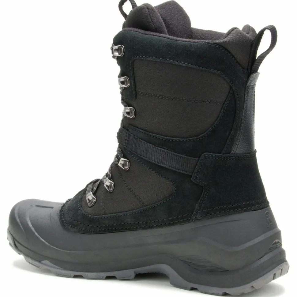 Durch die praktischen Anziehschlaufen im Fersenbereich lassen sich die Schuhe selbst mit kalten Händen bequem anziehen. Im unteren Bereich sind die Winterstiefel aus robustem Gummi gefertigt. Im oberen Teil sind die Winterschuhe aus weichem Leder hergestellt. Durch abgeklebte Nähte sind die Freizeitschuhe wasserdicht und lassen keine Nässe eindringen. Die Schnürung ist mit mehreren Zughaken ausgestattet, damit die Kamik Empire X bei jeder Wintertour bequem an Deinen Fuß sitzen.
