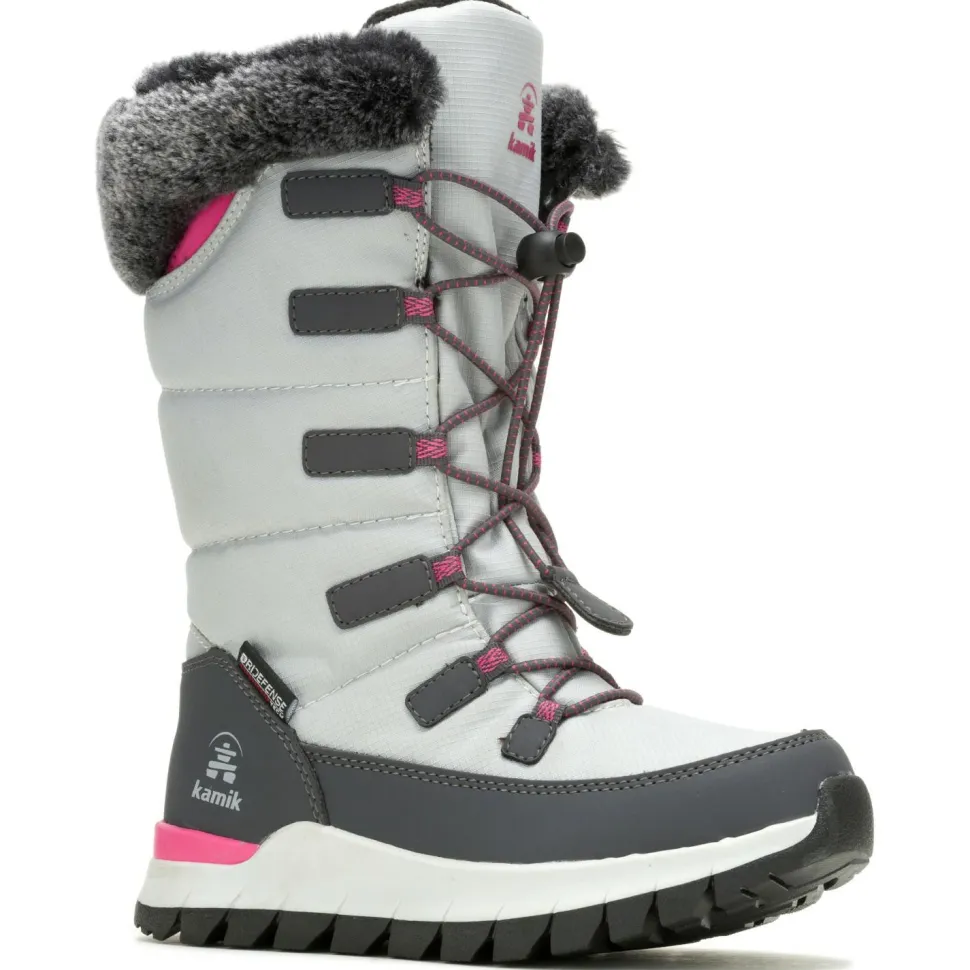 Da es bekanntlich kein schlechtes Wetter, sondern nur die falsche Kleidung gibt, ist es speziell bei den Herausforderungen, vor die uns winterliche Bedingungen stellen wichtig, gerade für Kinder die richtige Ausrüstung parat zu haben. Und da im Winter kalte oder nasse Füße der Spaßkiller Nr. 1 sind, schlägt hier die Stunde des Kid’s Prairie 2 von Kamik. Das dank DriDefense-Membran wasserdichte Obermaterial (Kunstleder und Nylon) schützt zuverlässig vor Schnee, Matsch und Feuchtigkeit. Und durch die HEAT-MX 145 Isolierung kann der Outdoor-Nachwuchs theoretisch bei Temperaturen von bis zu -40°C draußen rumtoben. Falls es in den Stiefeln dennoch mal zu warm werden sollte, kommt das kuschelig-bequeme, aber auch feuchtigkeitsableitende Fleece-Innenfutter ins Spiel.