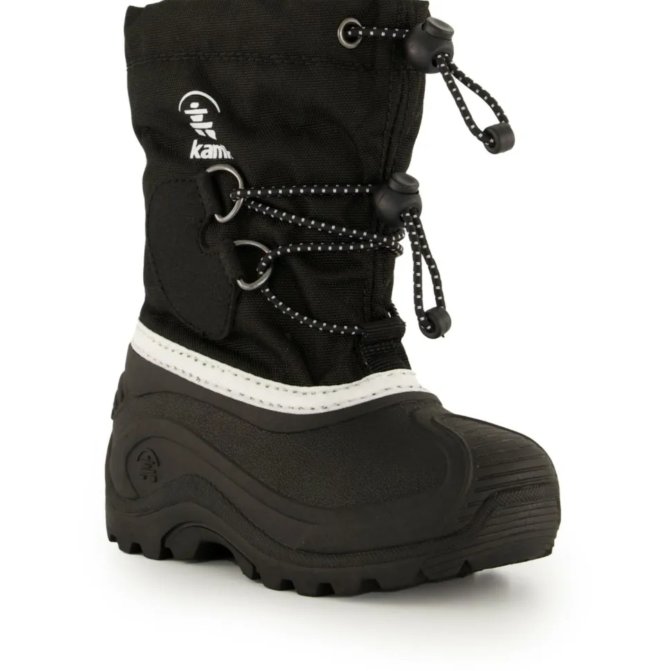 Der Southpole 4 von Kamik ist der perfekte Winterstiefel für alle kleinen Abenteurer- und Polarforscher-/innen. Laut Hersteller hält der Thermostiefel die Füße der Kleinen auch noch bei grimmiger Kälte bis minus 32 Grad Celsius schön warm. Selbst die 5. Jahreszeit (Tauwetter) im Yukon ist mit diesem gefütterten, wasserdichten Stiefel kein Problem – im Gegenteil: für extreme Witterungsbedingungen ist er gemacht. Ob der/die Kleine im Waldkindergarten bei eisigen Wintertemperaturen die Tierfährten im Schnee verfolgt oder im Winter am Bachufer herumkstiefelt – der Southpole 4 von Kamik macht alles mit. Und wird er innen tatsächlich mal nass von Oben, dann kann man das Thermofutter herausnehmen und trocknen. Alles kein Problem.