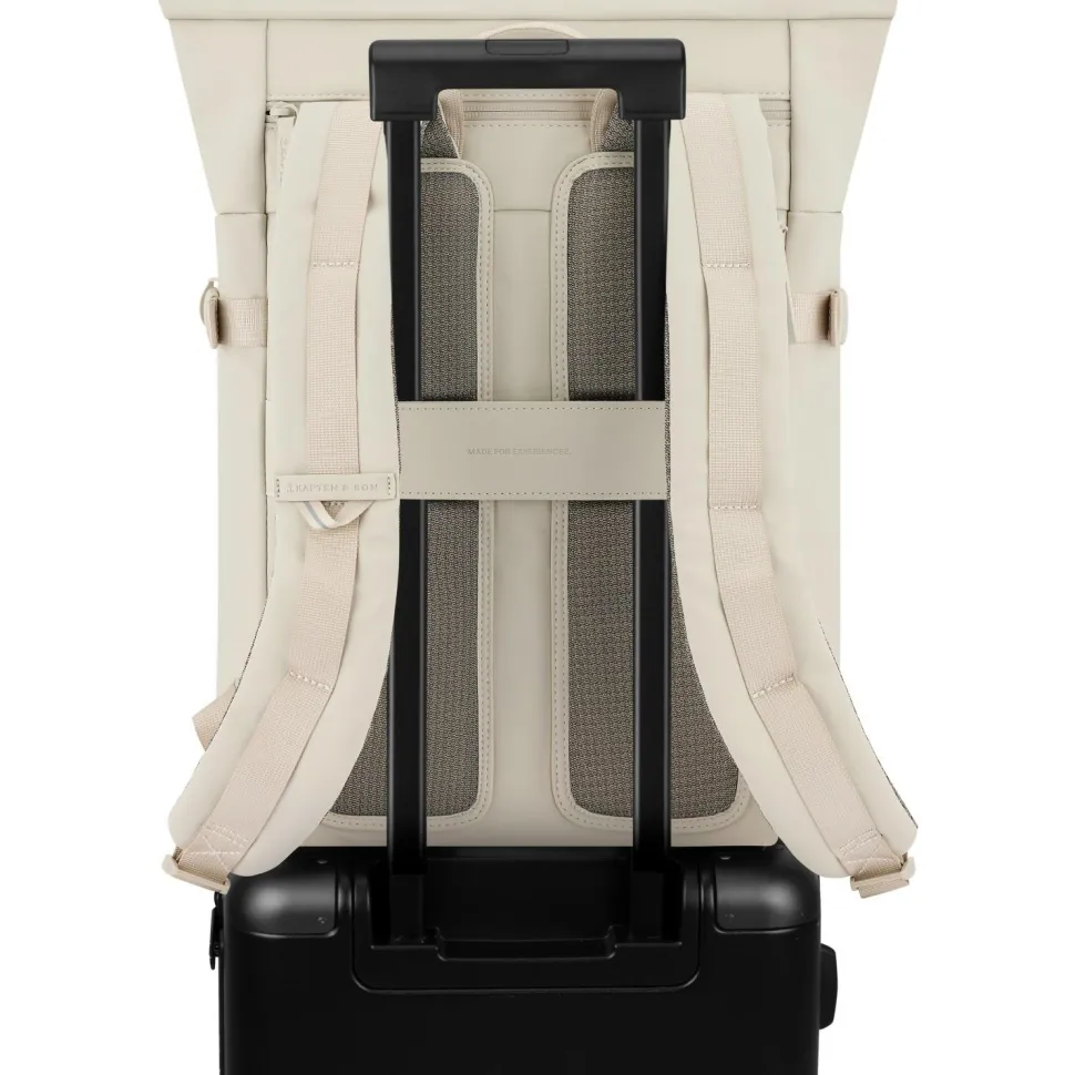 Mit einem Volumen von 16 Litern bietet er ausreichend Platz für all Deine Essentials. Mehrere Fächer und Innentaschen sorgen dafür, dass Du alles gut organisieren kannst. Egal, ob es sich um Deinen Laptop, Bücher, Snacks oder persönliche Utensilien handelt – in diesem Rucksack findet alles seinen Platz. Besonders praktisch ist die integrierte Kofferhalterung, die Dir das Reisen erleichtert und für einen sicheren Halt auf Deinem Rollkoffer sorgt.