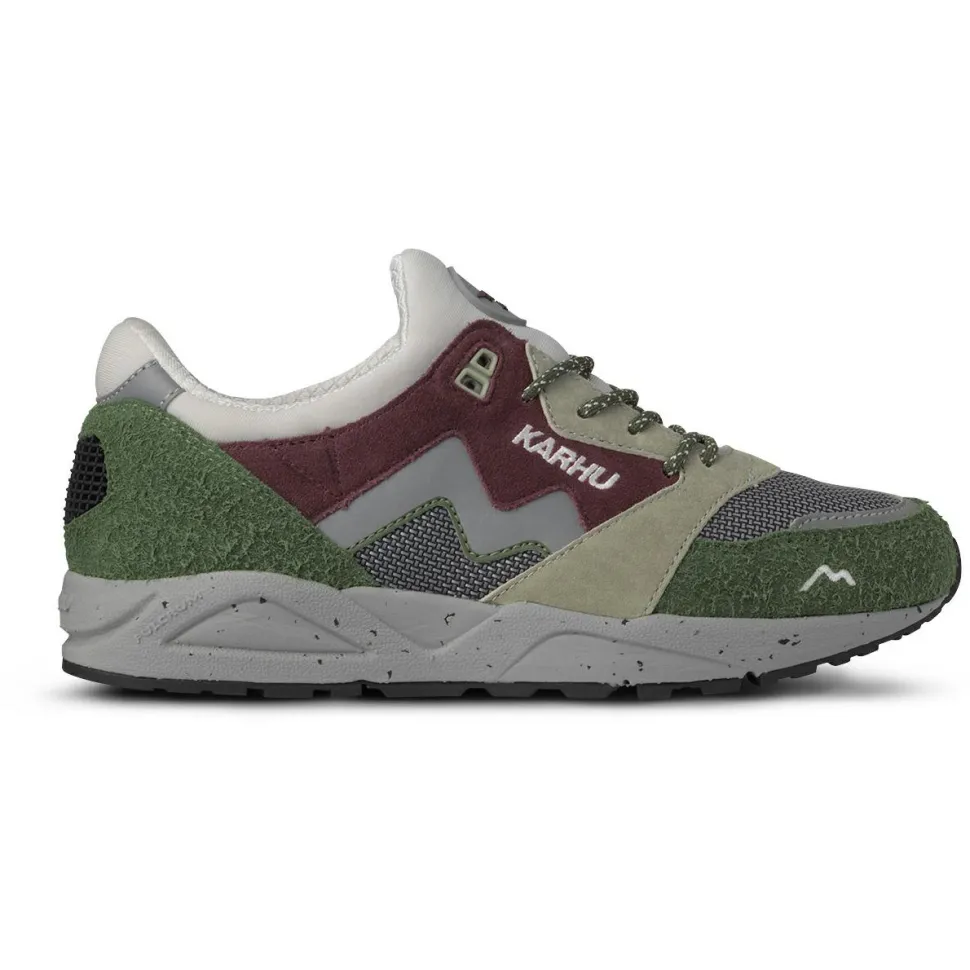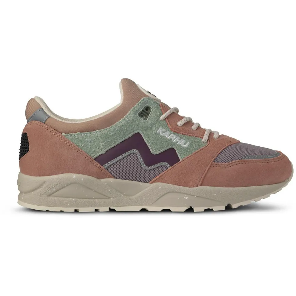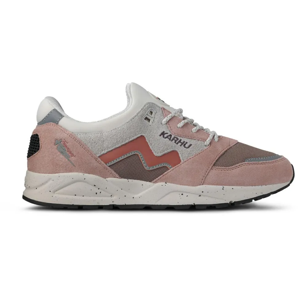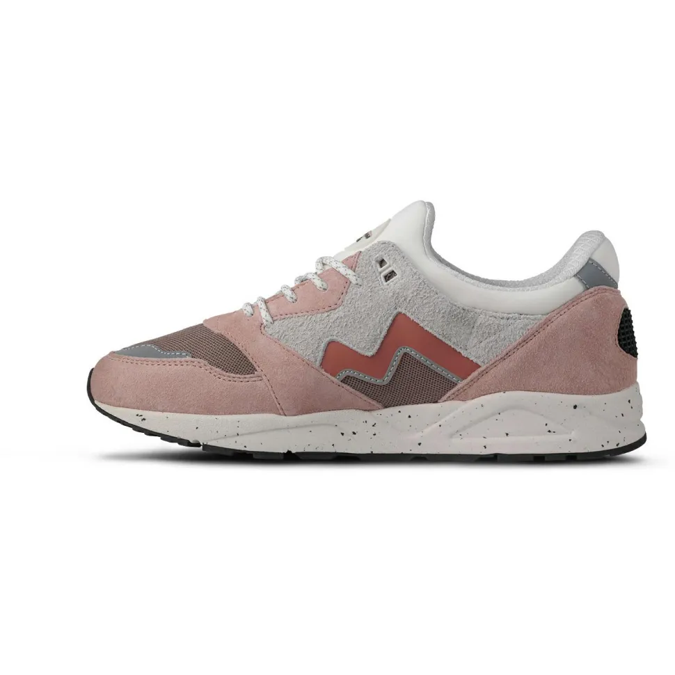 Die Aria Sneaker von Karhu greifen das Design der 90er auf und bringen es mit aktuellen Materialien und Details in die Gegenwart. Die Kombination aus glattem und strukturiertem Wildleder sorgt für eine hochwertige Optik und angenehme Haptik. Mesh-Einsätze verbessern die Luftzirkulation und machen den Schuh auch bei wärmeren Temperaturen tragbar. Die reflektierenden Elemente sind nicht nur ein stilistisches Detail, sondern erhöhen Deine Sichtbarkeit bei schlechten Lichtverhältnissen – etwa auf dem Heimweg nach einem langen Tag in der Stadt.