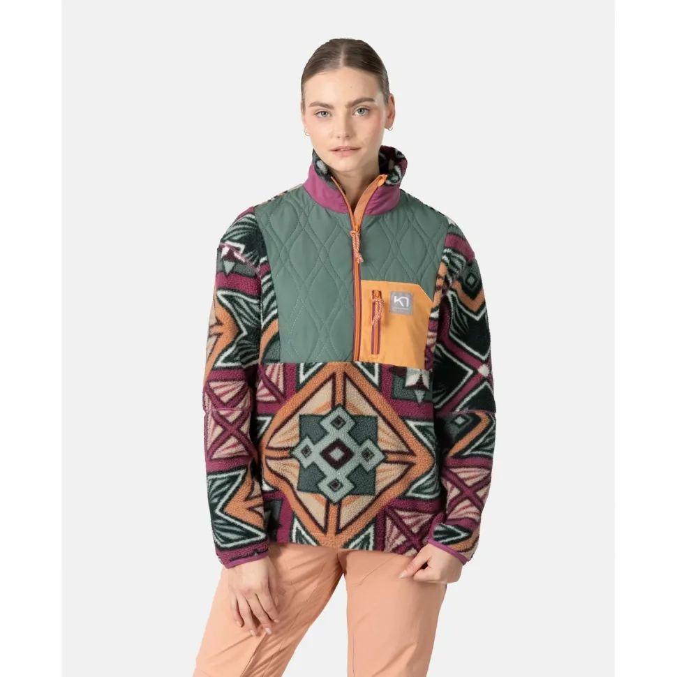 Der Women’s Rothe Half Zip Fleecepullover von Kari Traa mit dem grafischen Muster und dem gequilteten Einsatz macht optisch richtig was her!