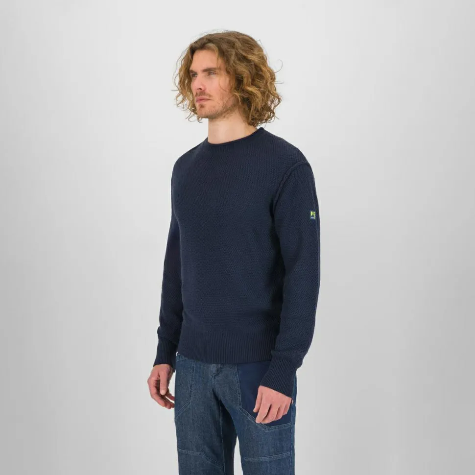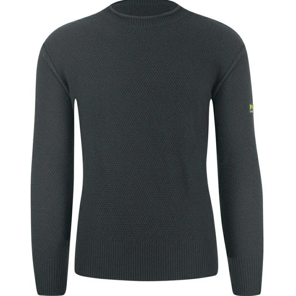 Der Ermellino Crewneck Sweater von Karpos ist ein warmes und komfortables Sweatshirt für den aktiven Winter. Sein äußerst komfortabler und natürlich funktionaler Materialmix aus Wolle und Acryl wird ergänzt durch einen sportlich-ergonomischen Schnitt mit Rundhalsausschnitt. Die Wolle hemmt die Entstehung von Gerüchen und sorgt für Wärme sowie angenehmen Temperaturausgleich bei starker Aktivität. Der Acryl-Anteil macht das Gewebe formstabil und hemmt die Entstehung von Fusseln, ohne den angenehm weichen Griff der Wolle zu beeinträchtigen.