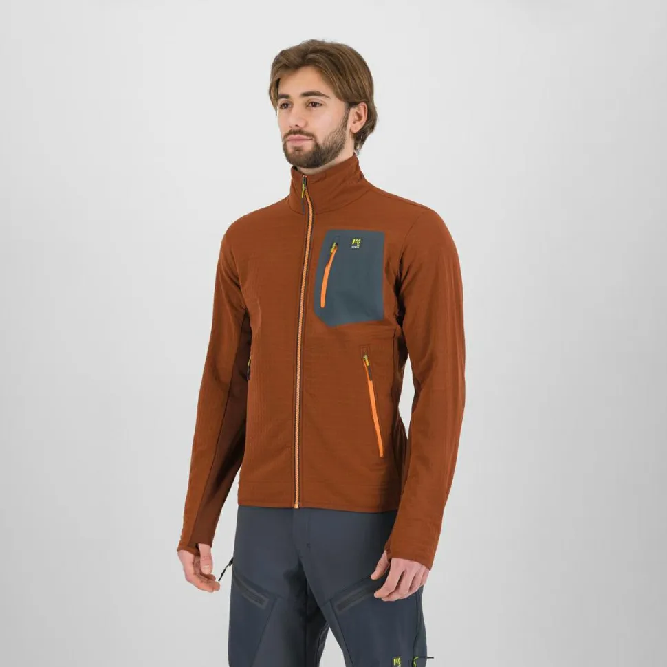 Die Marmolada Fleece von Karpos ist eine komfortable und rundum bergtaugliche Fleecejacke für den Winter. Sie ist aus wasserabweisendem Material gefertigt, dass innen mit Gaze für optimale Wärmeisolierung und außen mit Verstärkungen für abriebfeste Robustheit sorgt. Die Seiten und Unterarme bestehen aus leichten und elastischen Materialeinsätzen, die eine verbesserte Atmungsaktivität und Passform beisteuern. Für den jederzeit guten Sitz der Marmolada Fleecejacke sorgen auch die Daumenschlaufen an den Ärmelenden. Als weitere Details kommen die beiden Reißverschlusstaschen vorne und die Brusttasche mit Reißverschluss hinzu, sodass alle unterwegs benötigten Kleinigkeiten jederzeit griffbereit sind.