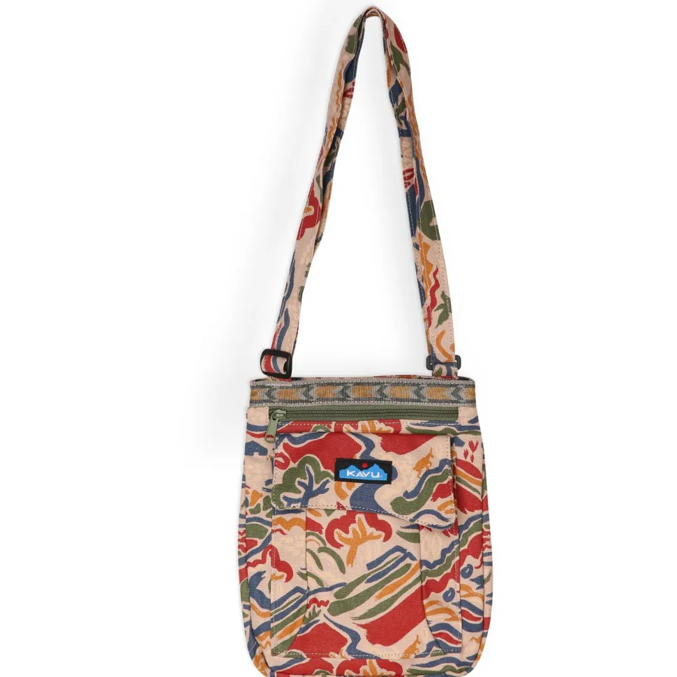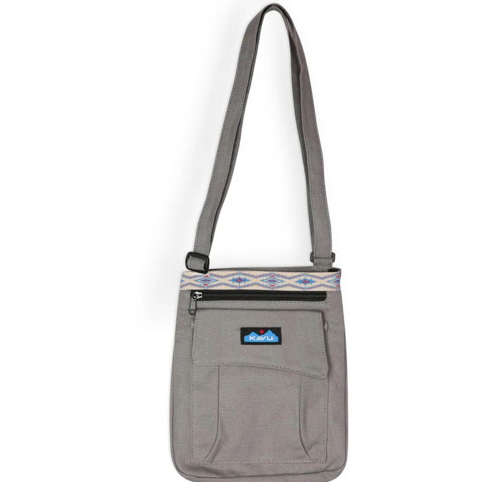 Die Keeper Umhängetasche von KAVU rundet Dein sportlich-lässiges Outfit ab. Mit ihrem Material aus Baumwolle und dem gemusterten Tape macht sie eine gute Figur. Du kannst sie im Alltag, beim Stadtbummel oder beim Reisen dabei haben und Deine wichtigsten Wertgegenstände und Hygieneutensilien in ihr verstauen.