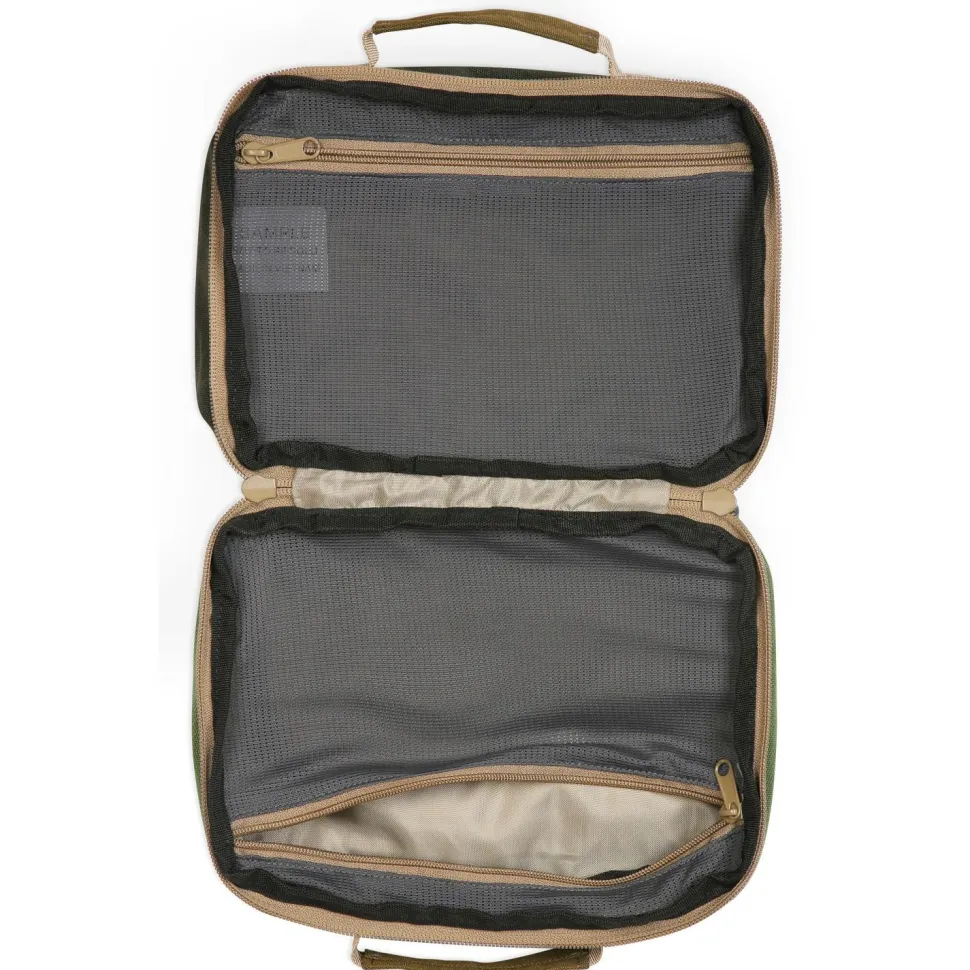 In dem großen Take In Tow 4,5 Kulturbeutel von KAVU kannst Du allerlei Hygieneutensilien und Unterwäsche mitnehmen. Dank seines großen Reißverschlusses kannst Du ihn komplett aufklappen. Die beiden Mesh-Innenfächer und die beiden Außenfächer mit Reißverschluss ermöglichen es Dir, Ordnung und Übersicht zu behalten.