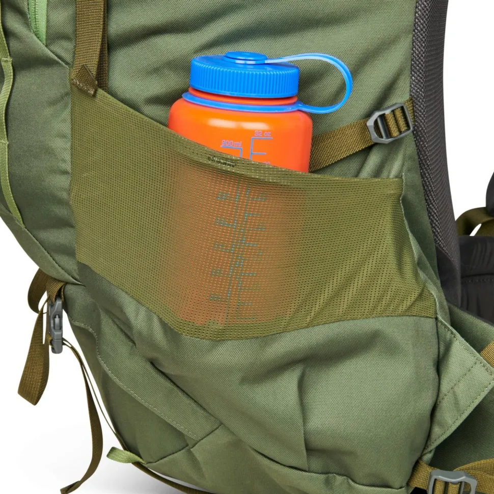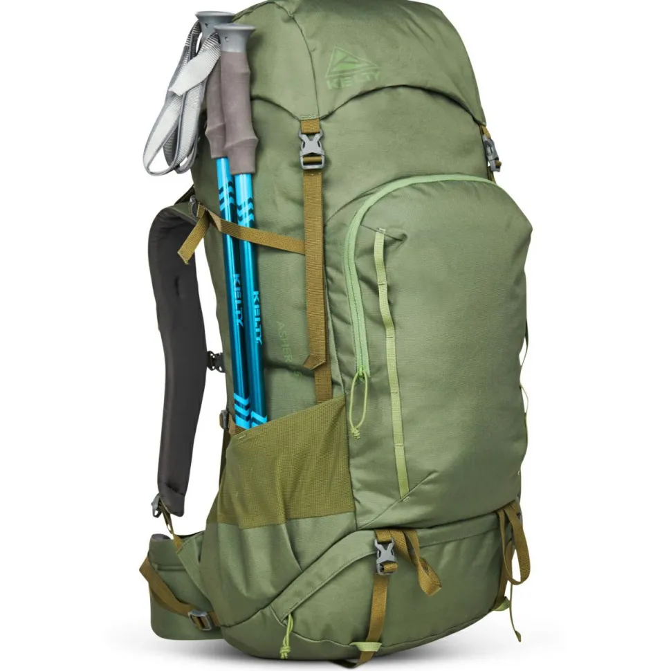 Der Asher 65 von Kelty ist ein geräumiger und komfortabler Begleiter für den Trail! Der Trekkingrucksack besteht aus langlebigem Oxford-Polyester und ist mit einer PFC-freien DWR-Imprägnierung versehen, die Schutz vor Nieselregen bietet. Mit seinem Volumen von 65 Litern bietet der Rucksack großzügigen Stauraum für Kleidung, Proviant und allerlei Kleinkram. Für den Schlafsack ist ein Extrafach mit Reißverschluss vorhanden und an der Front befindet sich zusätzlich ein großes Reißverschlussfach, das weitere Verstaumöglichkeiten bietet. Die zwei seitlichen Netztaschen bieten Platz für Trinkflaschen, während das Smartphone griffbereit in einer Tasche am Hüftgurt aufbewahrt werden kann.