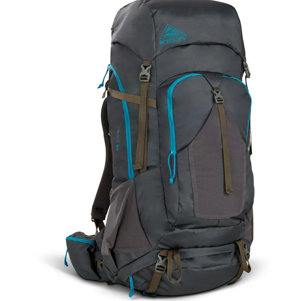 Der Asher 85 von Kelty bietet maximalen Stauraum und Komfort für Backpacking- und Trekkingabenteuer! Der große Trekkingrucksack besitzt ein langlebiges Außenmaterial aus Oxford-Polyester, das dank PFC-freier DWR-Imprägnierung auch Nieselregen problemlos wegsteckt. Der Rucksack ist sowohl von oben als auch von der Seite aus zugänglich und bietet mit seinem Volumen von 85 Litern reichlich Stauraum für alles, was Du auf langen Touren brauchst. An der Front befindet sich zudem ein großes Reißverschlussfach und für den Schlafsack ist ein praktisches Extrafach mit Reißverschluss vorhanden. Die zwei seitlichen Netztaschen eignen sich ideal für Trinkflaschen, während die Hüftgurttaschen Platz für das Smartphone und andere Kleingegenstände bieten.