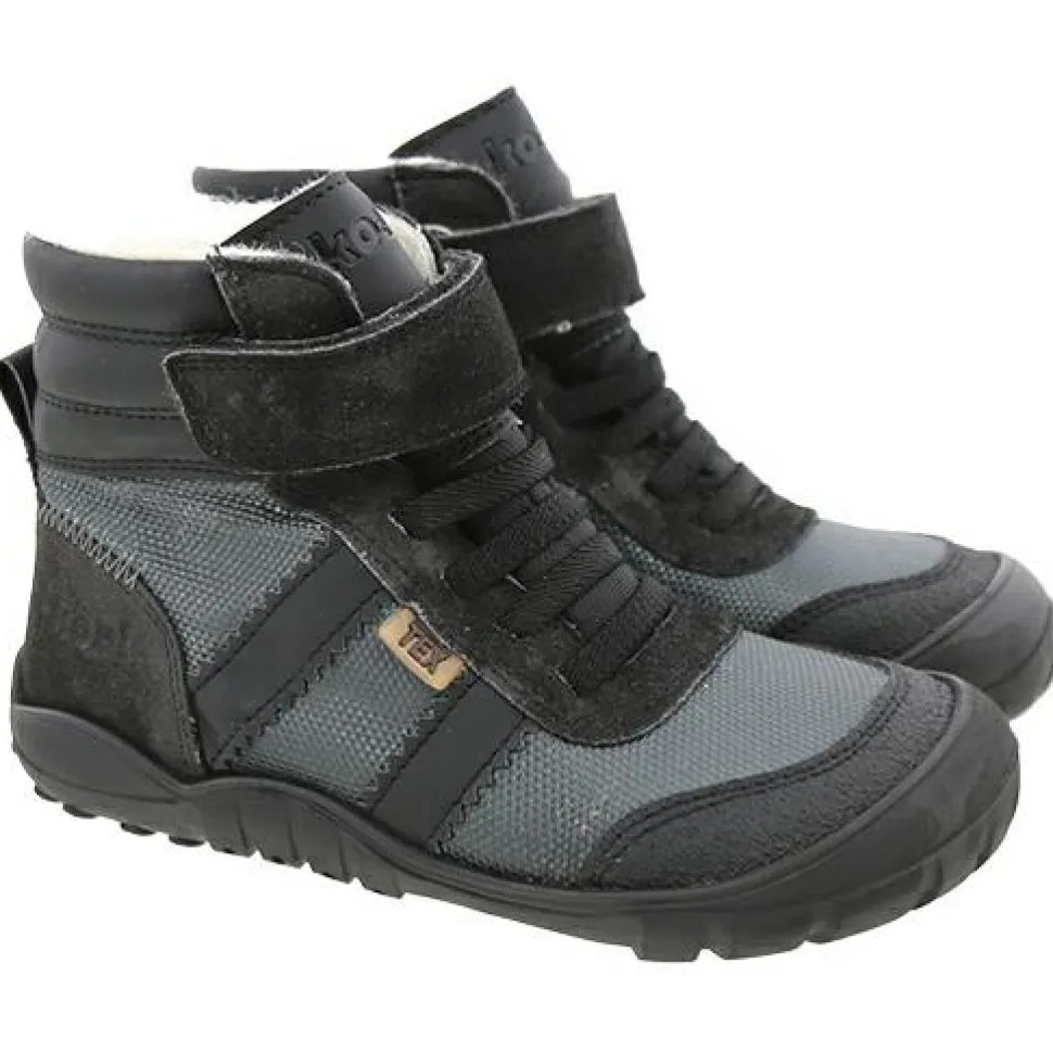 Die Kid’s Milam von Koel sind Barfuß-High-Top-Sneaker für Kinder, die bei jedem Wetter draußen aktiv sind. Die mittelbreite Zehenbox bietet ausreichend Platz für eine natürliche Fußstellung, ohne dass der Schuh zu locker sitzt. Das Obermaterial aus Cordura und Leder ist besonders strapazierfähig und mit einer wasserfesten TEX-Membran versehen. Damit bleibt der Fuß auch bei feuchter Witterung trocken – ob beim Spielen im Garten oder beim Spaziergang durch den Wald.