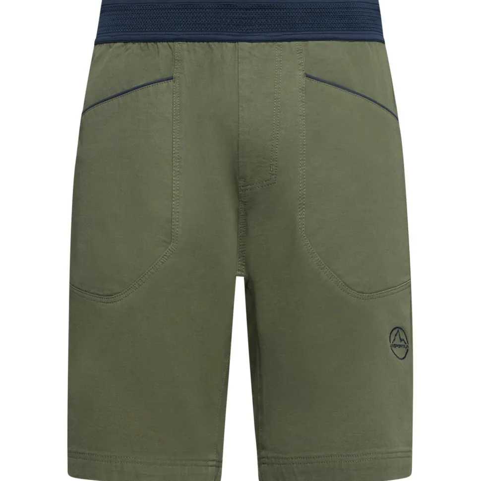 Die Flatanger Short von La Sportiva ist ein robuster Begleiter für den Fels, der jede Bewegung perfekt mitmacht! Die Klettershorts verwendet einen umweltfreundlichen Materialmix aus Bio- und Recycling-Baumwolle, der einen angenehm weichen und hautfreundlichen Tragekomfort bietet. Das beigemischte Elasthan und der Zwickeleinsatz machen die Hose schön geschmeidig und ermöglichen eine uneingeschränkte Bewegungsfreiheit. Der elastische Gummibund sorgt für einen optimalen Sitz, während die zwei geräumigen Fronttaschen Platz für allerlei Kleinkram bieten.