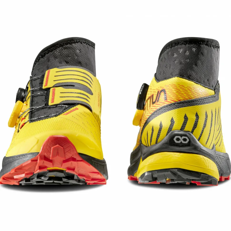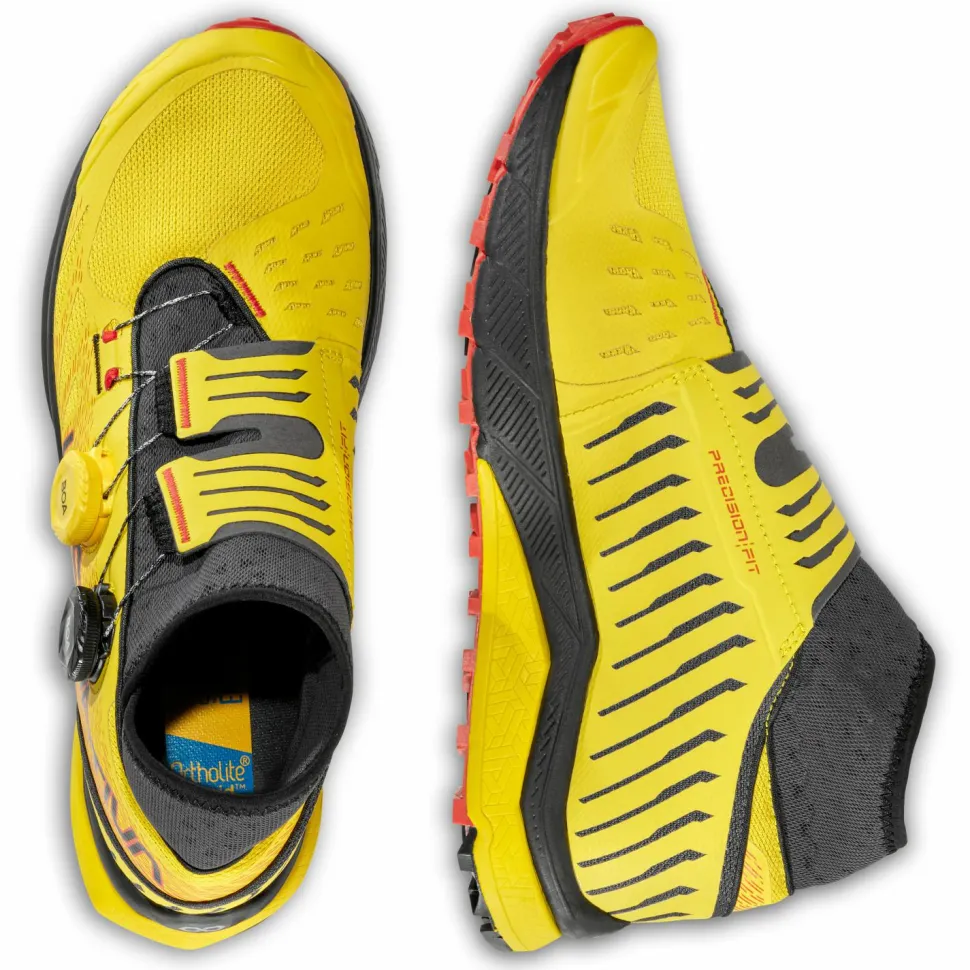 Die Jackal II Boa Trailrunningschuhe von La Sportiva zeigen schon auf den ersten Blick, dass sie in Sachen Trailrunning Profis sind. Die robuste Sohle glänzt auf rutschigen Untergründen genauso, wie auf Asphalt. Damit die Schuhe perfekt sitzen, können sie mit nur einem Handgriff anhand von Boa-Drehverschlüssen in der Festigkeit angepasst werden. Die atmungsaktiven Eigenschaften der hochwertigen Materialien sorgen dafür, dass Du auch bei schweißtreibenden Gipfelanstiegen trockenen Fußen an Dein Ziel kommst. Feuchtigkeit kann durch die Mesh-Einsätze direkt an die Umgebungsluft abgegeben werden.