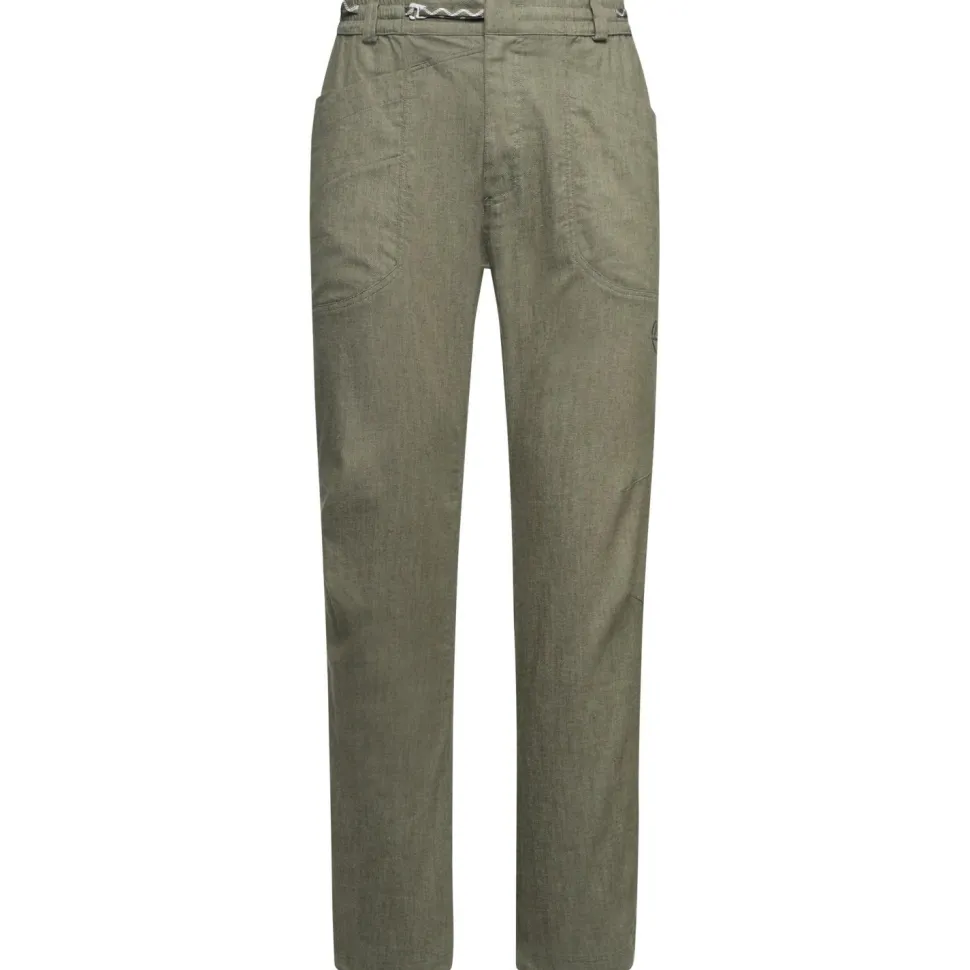 Die Sierra Rock Pant von La Sportiva ist der ideale Begleiter für lange Tage am Fels! Die Kletterhose verwendet einen umweltfreundlichen Materialmix aus recycelter Baumwolle und Hanf, der ein optimales Feuchtigkeitsmanagement und einen angenehm weichen Tragekomfort bietet. Der kleine Stretchanteil und der Zwickeleinsatz machen die Hose schön geschmeidig und ermöglichen eine uneingeschränkte Bewegungsfreiheit. Der elastische Bund sorgt für ein Plus an Komfort und ist per Klettverschluss regulierbar, um einen passgenauen Sitz in jeder Situation zu gewährleisten. Abgerundet wird die Kletterhose durch zwei offene Front- und Gesäßtaschen, eine Gesäßtasche mit Reißverschluss sowie eine praktische Bürstentasche.