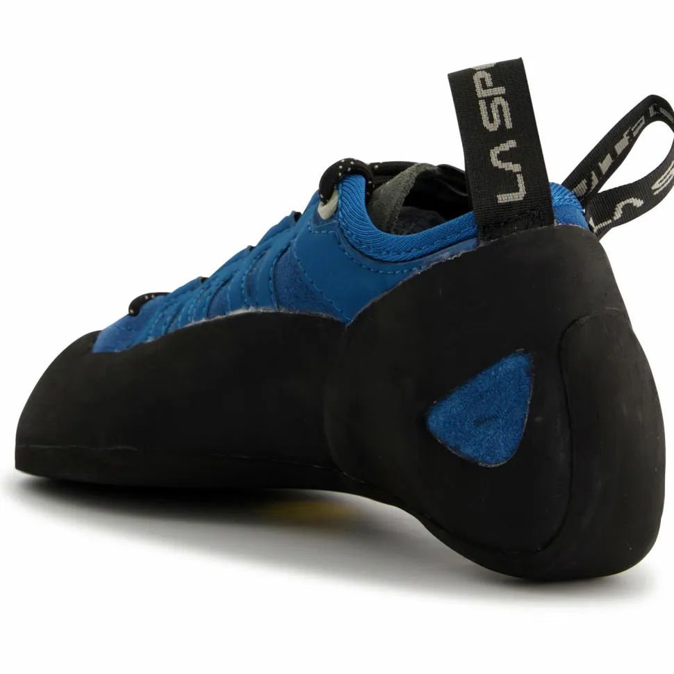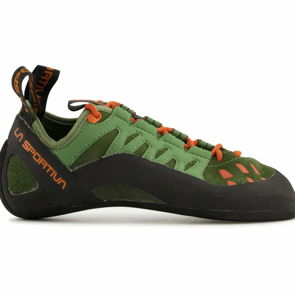 Die Tarantulace von La Sportiva sind die idealen Indoor-Kletterschuhe für Anfänger. Sie gewöhnen Dich mit ihrer leichten Vorspannung an die Kletterwände und haben dabei mit der FriXion Black 4 mm Sohle genügend Grip für die Vertikale. Durch ihre schweißableitende Zunge bieten Dir die Kletterschuhe einen angenehmen Tragekomfort. Mit der Schnürung kannst Du außerdem selbst bestimmen, wie eng oder locker Du die Schuhe gebunden haben möchtest. Dank der Leder-Oberfläche sind die Tarantulace robust und langlebig und Du kannst sie bei Bedarf wiederbesohlen lassen.