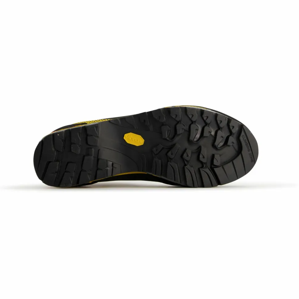 Die Trango Tech Leather GTX Bergschuhe von La Sportiva sind mit einer abriebfesten und besonders rutschfesten La Sportiva Cube Sohle ausgestattet, die vom Sohlenspezialist Vibram für La Sportiva entwickelt und produziert wird. Mit seinem TPU Einsatz an der Ferse ist der Alpinschuh bestens für den Einsatz von Steigeisen mit Kipphebelbindung vorbereitet. Schuhspitze und Ferse sind dafür mit einer robusten Schutzschicht aus PU verstärkt, die auch bestens vor Steinen und Geröll schützt. Die Sohlenkonstruktion der Trango Tech Leather GTX wird durch eine Polyurethan Zwischensohle und eine 4 mm PPE Brandsohle mit Glasfaserverstärkung ergänzt.